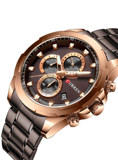 ساعة كرونوغراف للرجال مقاومة للماء وبسوار ستانلس ستيل وكوارتز كاجوال 8358 - 47 ملم - بني