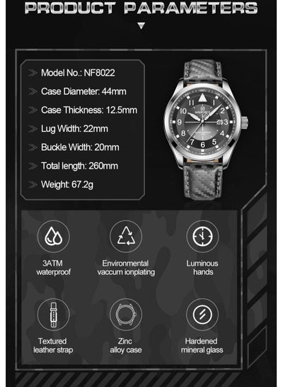 ساعة نافي فورس للرجال بتقويم رياضي كوارتز تتوهج في الظلام ومقاومة للماء NF8022