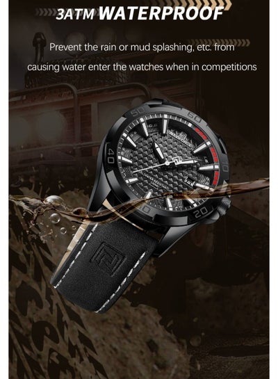 ساعة NAVIFORCE للرجال الجديدة ساعة معصم رجالية فاخرة كوارتز رياضية PU حزام جلد 30 متر مقاومة للماء NF9202L
