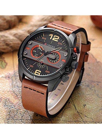 ساعة رجالية مقاومة للماء من الجلد الأصلي مع ساعة كالاندر كوارتز 8379 - 47 ملم - برتقاليDhs. 51.09Dhs. 115.00