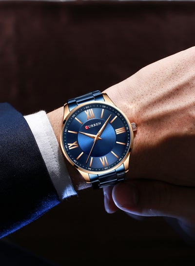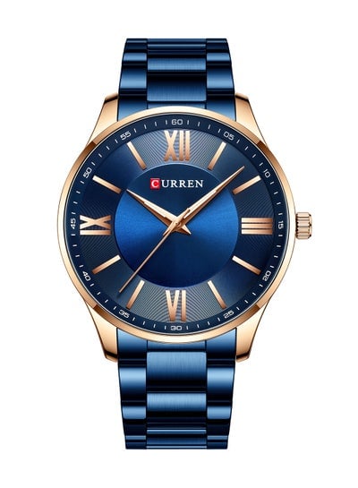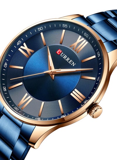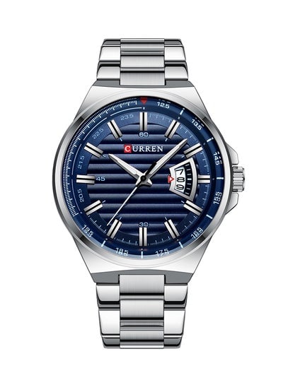 ساعة رجالية مقاومة للماء بسوار ستانلس ستيل وكوارتز كاجوال 8383 - 44 ملم - أزرقDhs. 53.82Dhs. 135.00