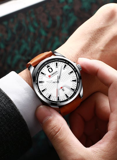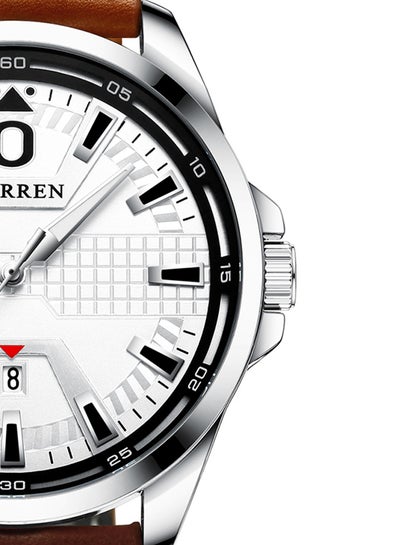 ساعة رجالية مقاومة للماء من الجلد الأصلي مع ساعة كالاندر كوارتز 8376 - 46 ملم - فضيDhs. 51.09Dhs. 125.00