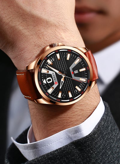 ساعة رجالية مقاومة للماء من الجلد الأصلي مع ساعة كوارتز CalAnder 8376 - 46 ملم - بنيDhs. 54.74Dhs. 125.00