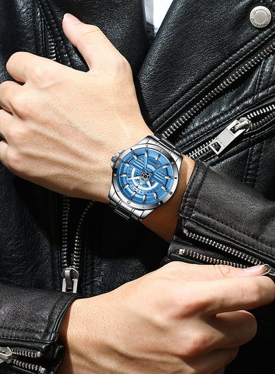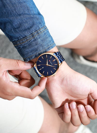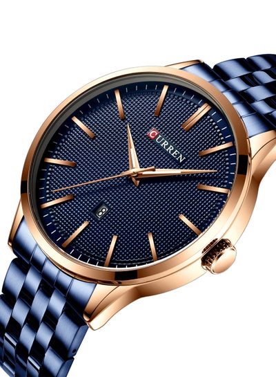 ساعة رجالية مقاومة للماء بسوار ستانلس ستيل وكوارتز 8364 - 45 ملم - أزرقDhs. 65.68Dhs. 135.00