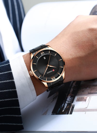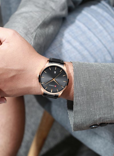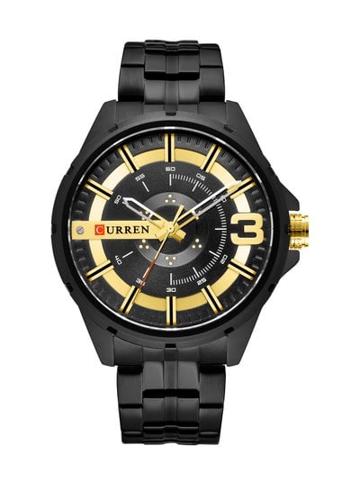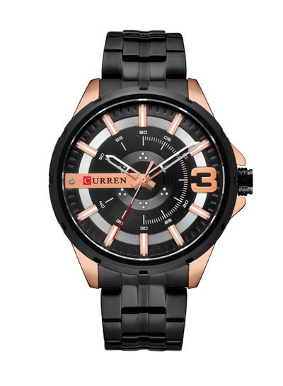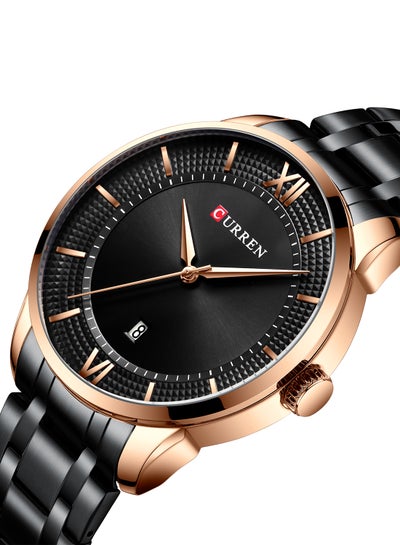ساعة رجالية مقاومة للماء بسوار ستانلس ستيل وكوارتز كاجوال 8356 - 42 ملم - أسودDhs. 62.95Dhs. 135.00