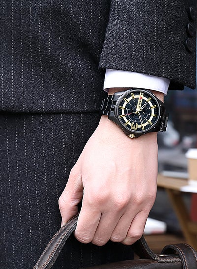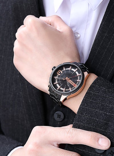 ساعة رجالية مقاومة للماء بسوار من الستانلس ستيل وحركة كوارتز وعرض اليوم والتاريخ 8381 - 46 ملم - باللون الأسودDhs. 69.33Dhs. 155.00