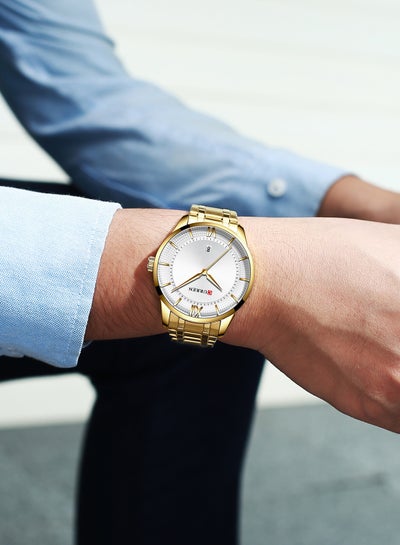 ساعة رجالية مقاومة للماء بسوار ستانلس ستيل وكوارتز كاجوال 8356 - 42 ملم - ذهبيDhs. 65.68Dhs. 135.00
