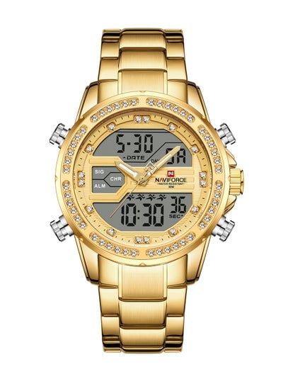 ساعة يد رجالية من الستانلس ستيل، أنالوج ورقمية، NF9190 G/G - 45 ملم - ذهبيDhs. 90.32Dhs. 245.00