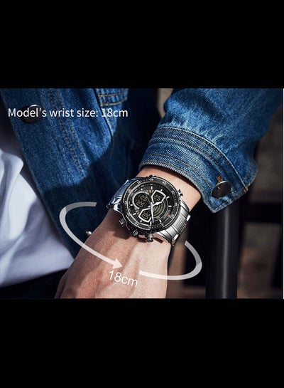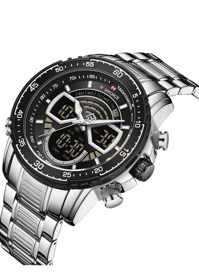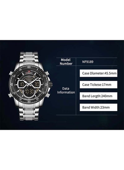 ساعة يد رجالية من الستانلس ستيل، أنالوج ورقمية، NF9189 S/B - 46 ملم - فضيDhs. 90.32Dhs. 225.00