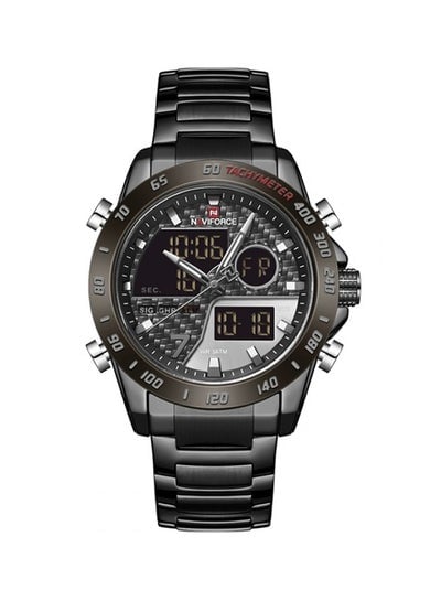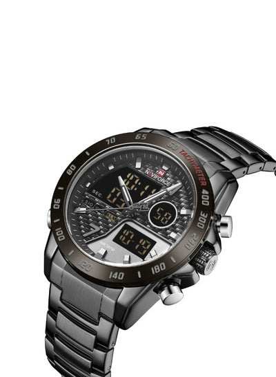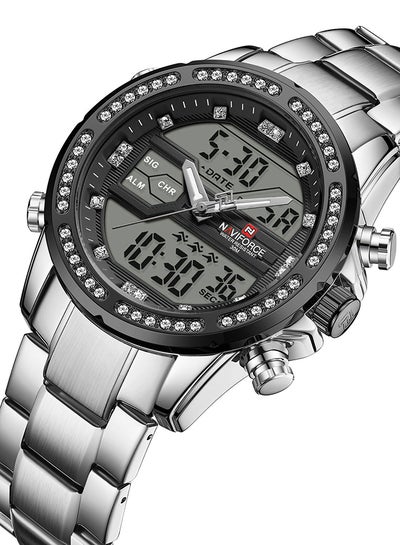 ساعة يد رجالية من الفولاذ المقاوم للصدأ تناظرية/رقمية NF9171 B-GY-B