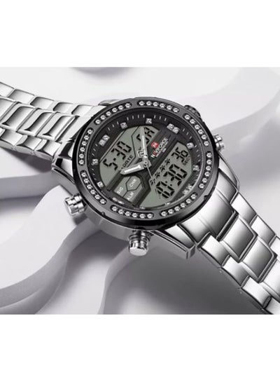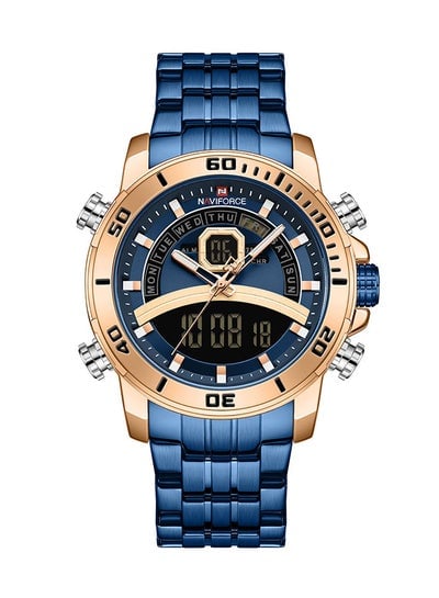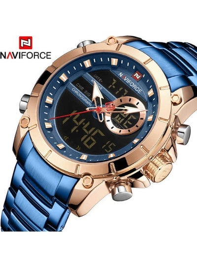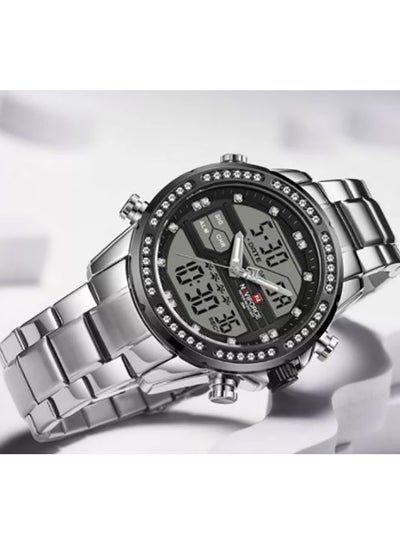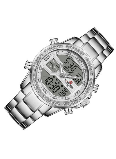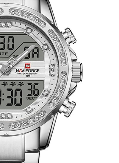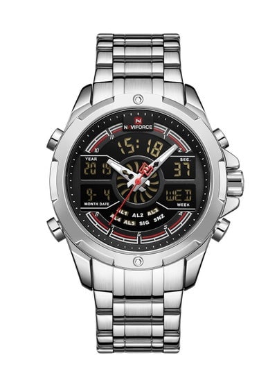 ساعة يد رجالية من الفولاذ المقاوم للصدأ تناظرية/رقمية NF9171 S-CE-CE
