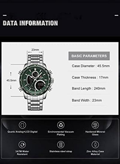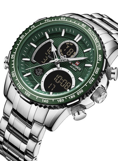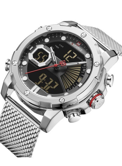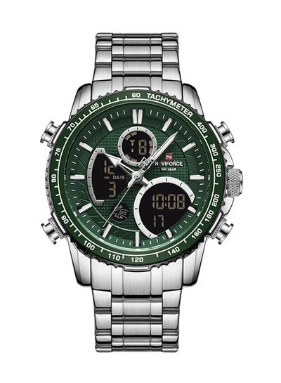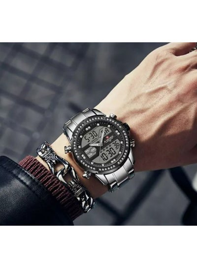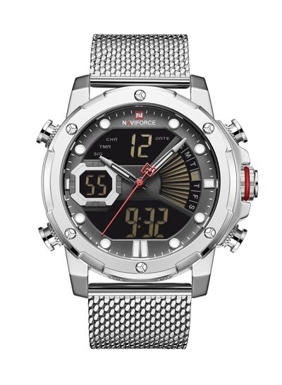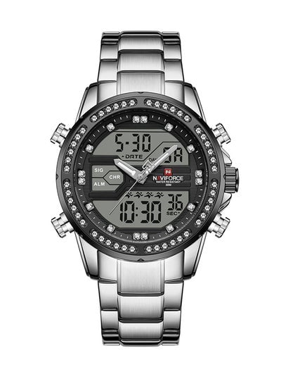 ساعة يد رجالية من الفولاذ المقاوم للصدأ تناظرية + رقمية NF9182 S/GN