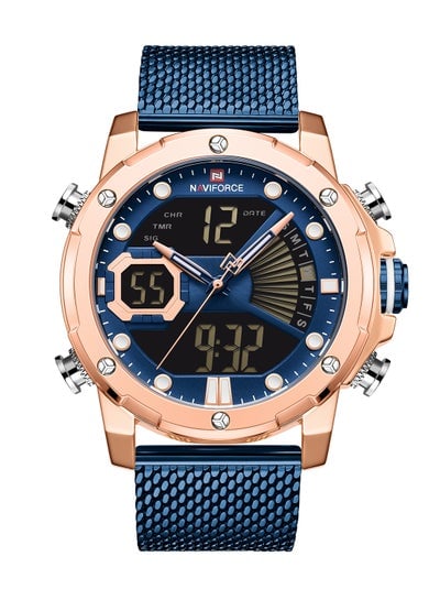 ساعة يد رجالية من الفولاذ المقاوم للصدأ تناظرية + رقمية NF9172S RG/BE/BEDhs. 90.32Dhs. 245.00