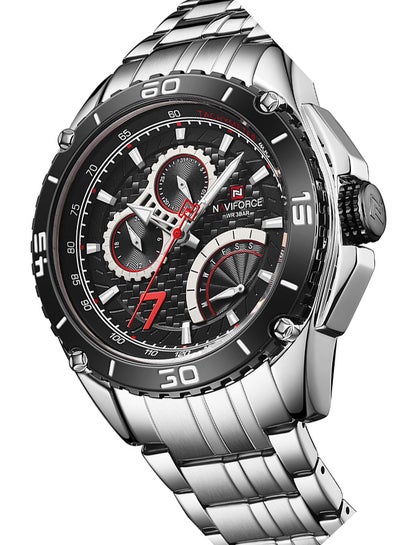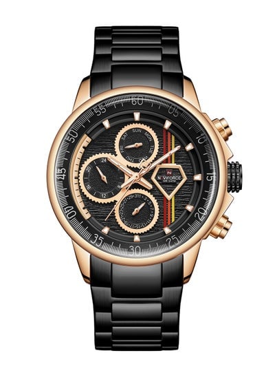 ساعة يد رجالية من الستانلس ستيل بعقارب NF9180 B/R/B - 47 ملم - أسودDhs. 107.65Dhs. 225.00