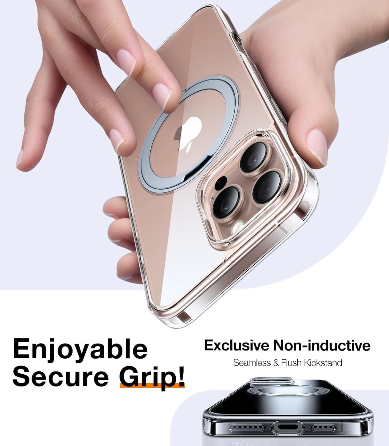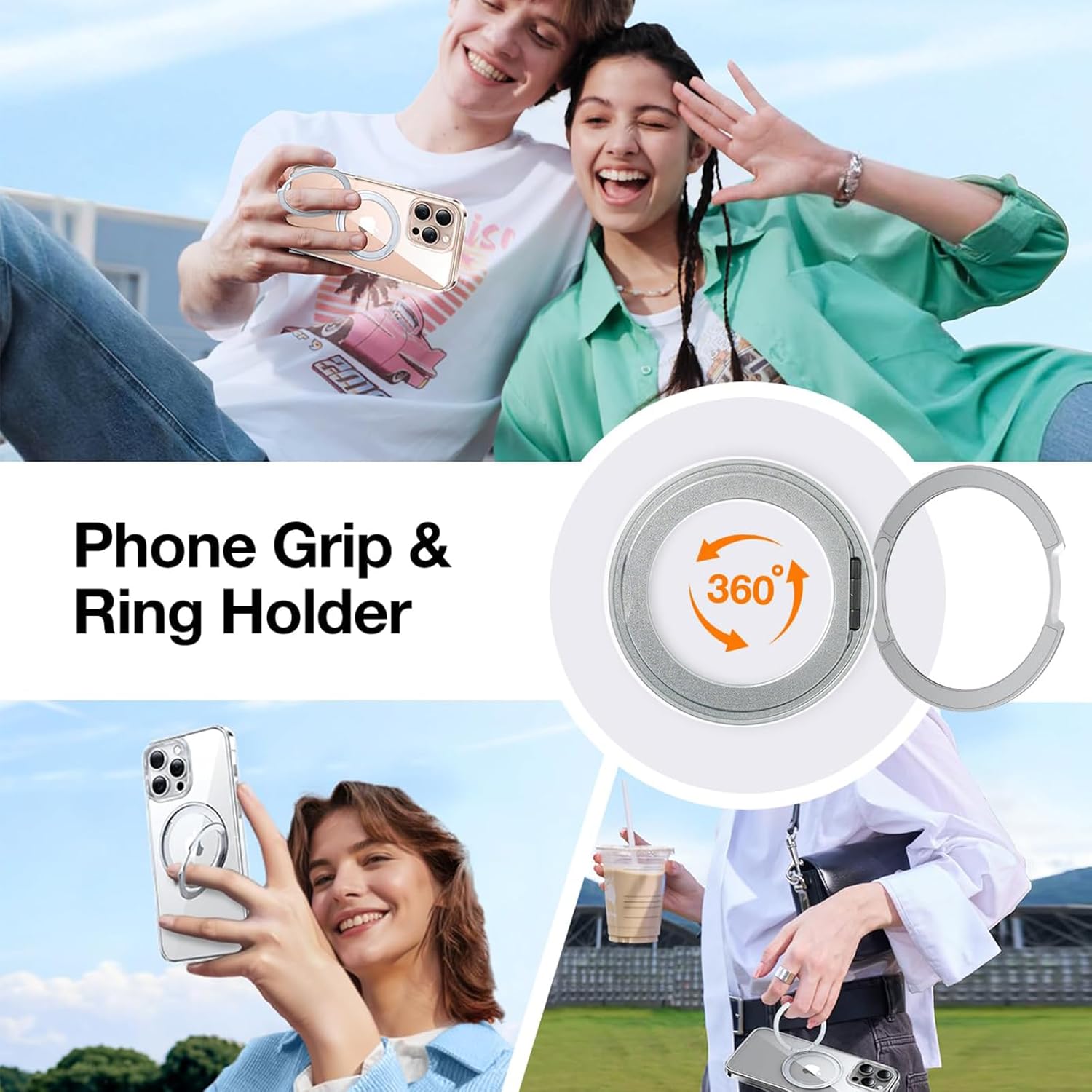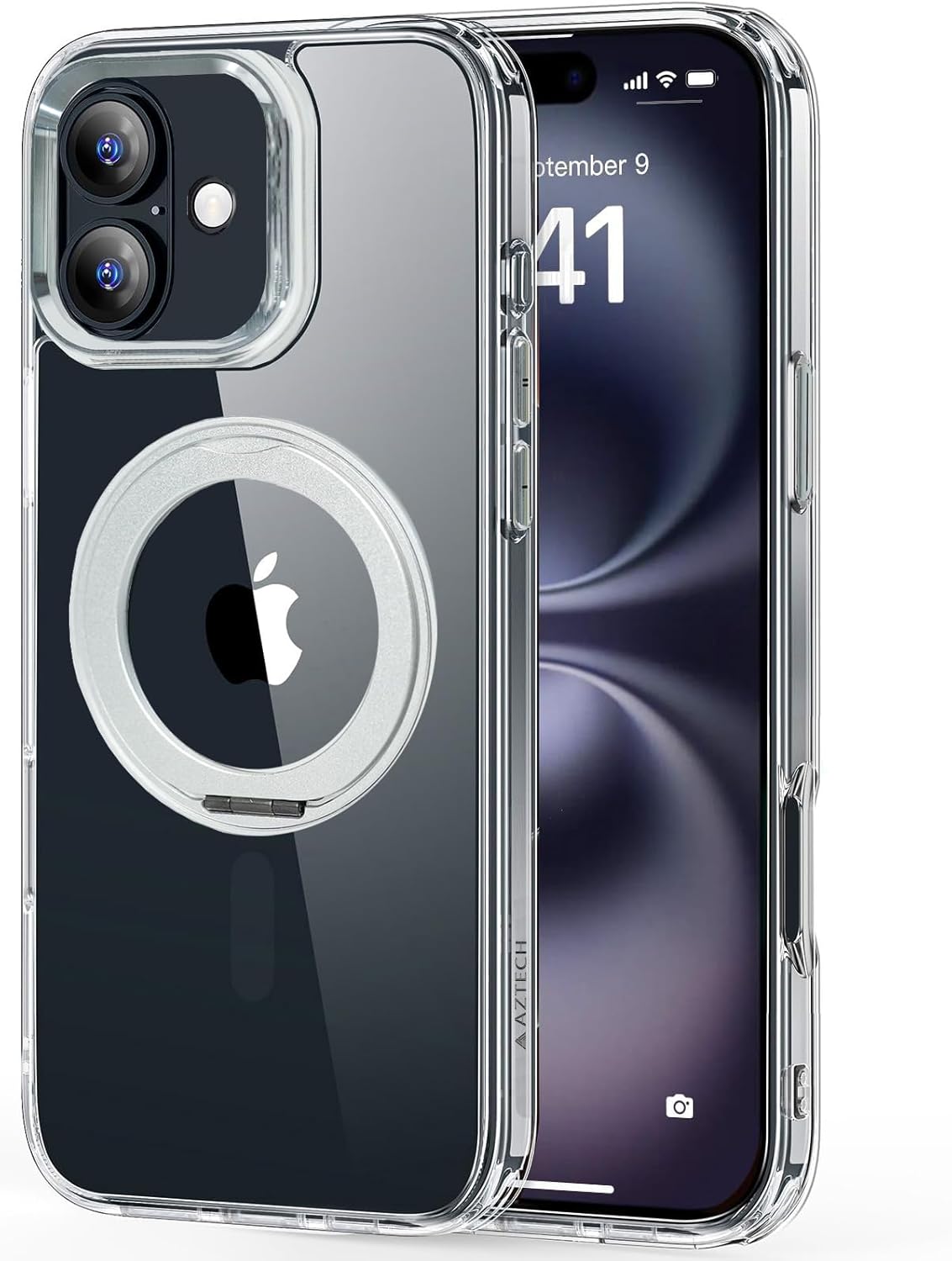 AZTECH SuperSnap Clear Case for iPhone 16 Plus Magsafe with Built-in 360° Rotating Silver Metal Ring, Kickstand Ring Holder, Shockproof Bumper, Slim Magnetic Wireless Charging Compatible CoverDhs. 112.00Dhs. 119.00