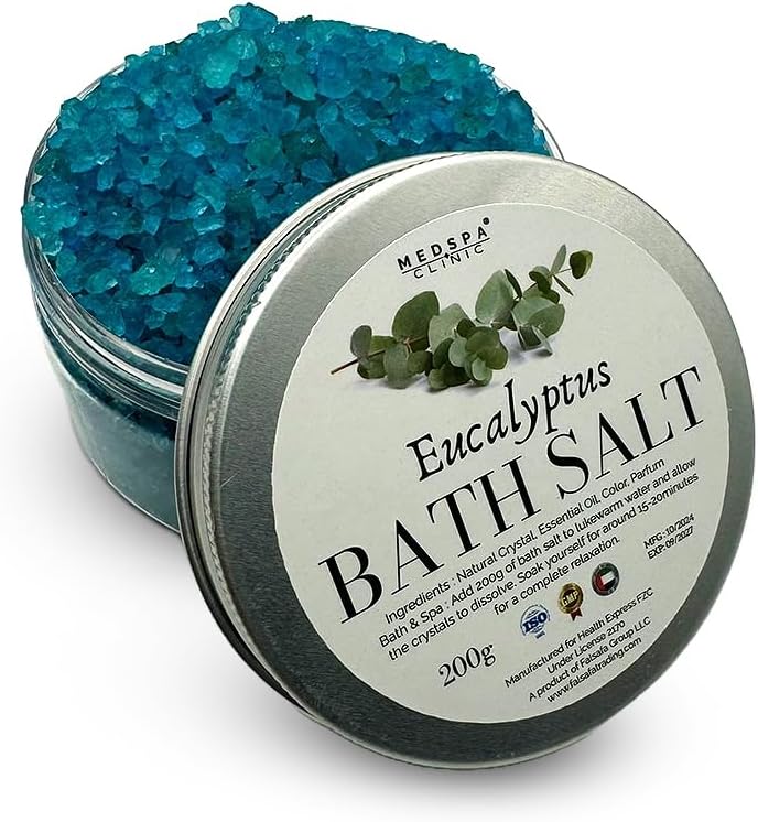 MedspaClinic Eucalyptus Bath Salt for Body and Foot Spa, Calming, Relaxing, Aromatherapy, Travel Size 200g