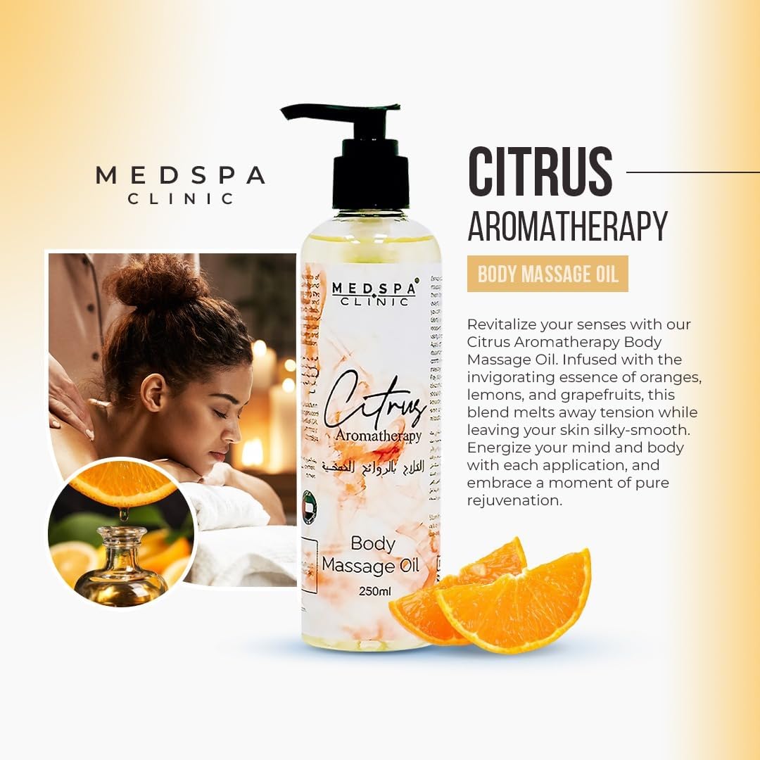 MedspaClinic Citrus Massage Oil. 250ml - Refreshing Aromatherapy Blend - Soothes & Nourishes for Deep Tissue Massage.