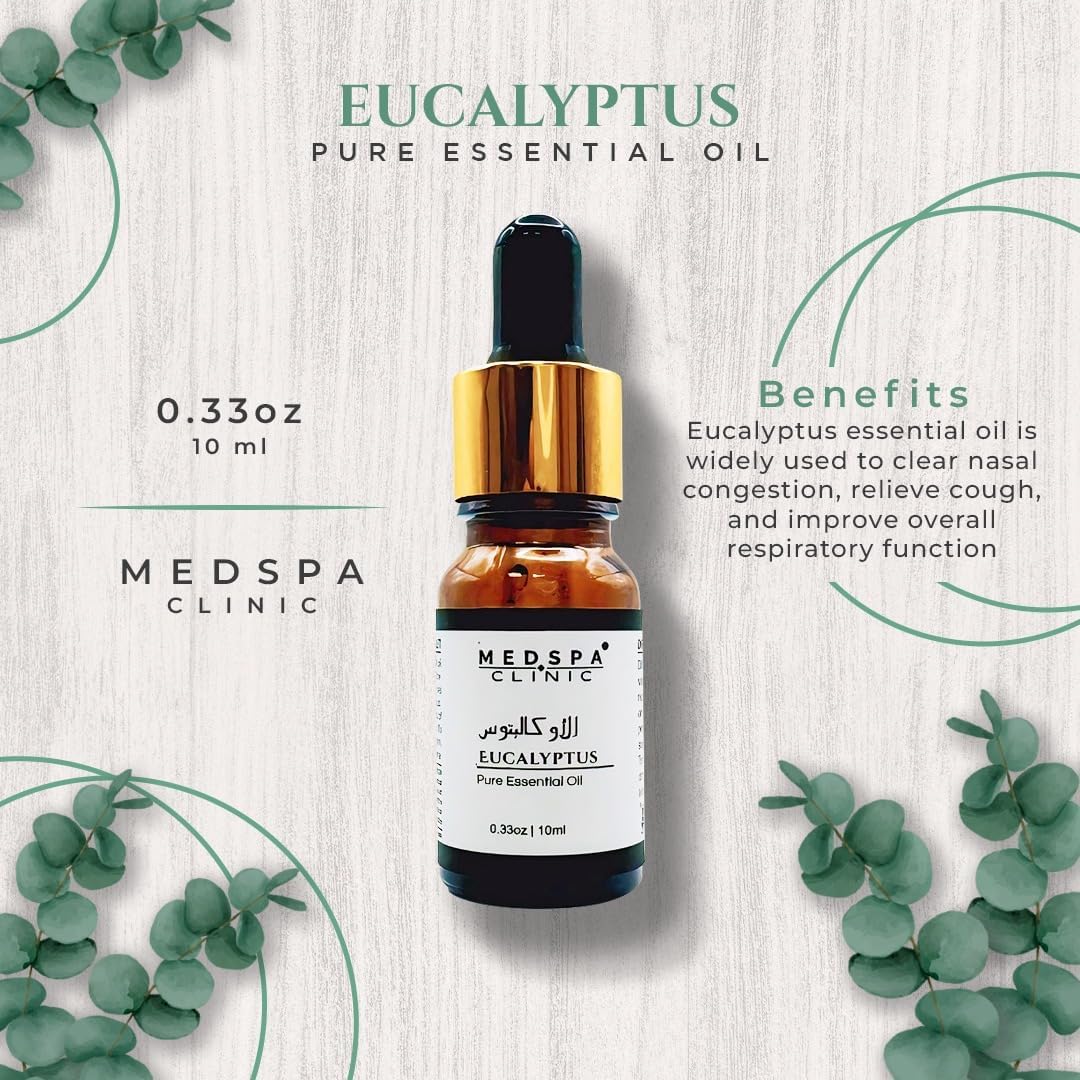 MedspaClinic Eucalyptus Essential Oil - 100% Pure and Natural - Aromatherapy for Respiratory Support and Relaxation - 10ml | 0.33oz Bottle