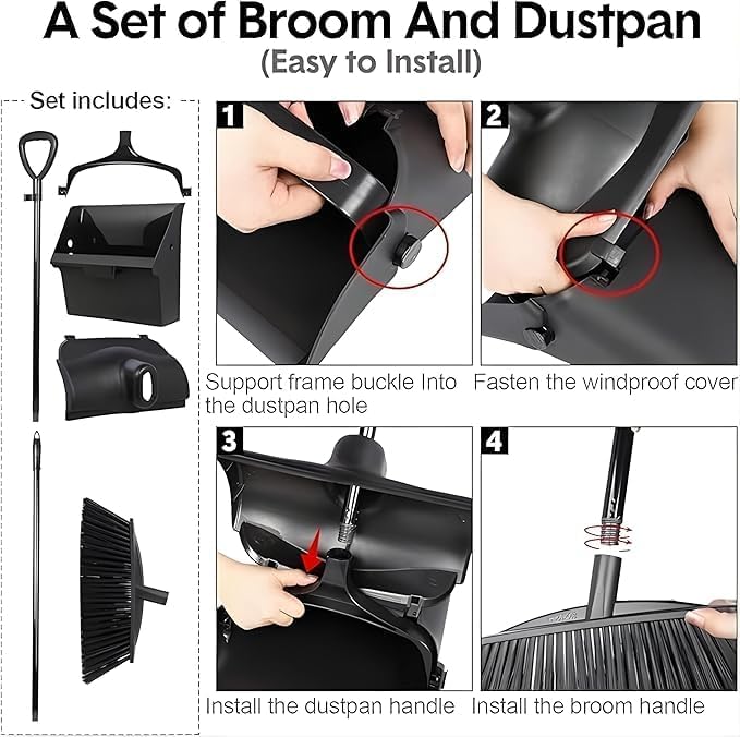 Hexar Broom and Dustpan Set with Lid,Stand-Up Long Handle Dust Pan for Home, Kitchen, Office, Lobby, Outdoor Cleaning – Self-Cleaning TeethDhs. 48.50