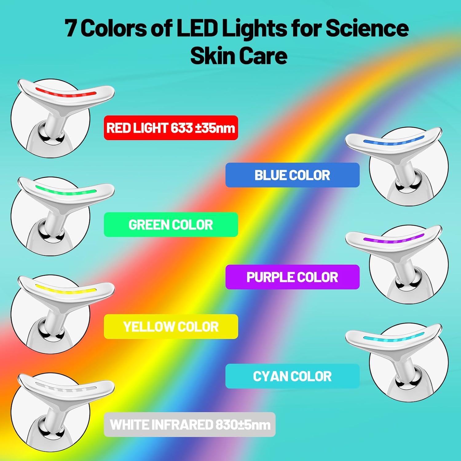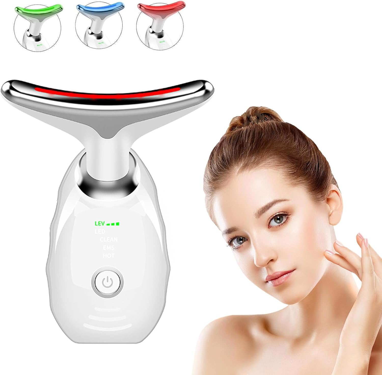 جهاز فلوفركيتي للعلاج بالضوء الأحمر للوجه، جهاز تدليك الوجه بتقنية LED، جهاز الضوء الأحمر (أبيض، 7 ألوان)Dhs. 64.00