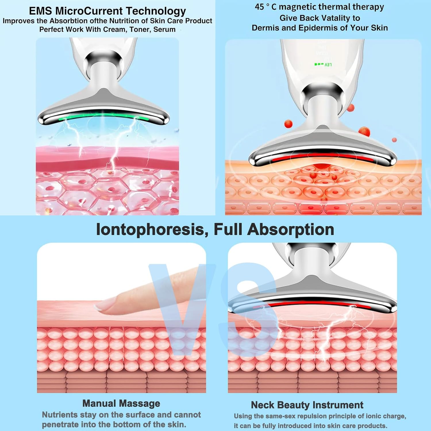 جهاز تدليك الوجه الكهربائي من كانف، جهاز مضاد للتجاعيد للوجه مزود بثلاثة أوضاع، أداة تدليك للوجه والرقبة للنساء لإزالة التجاعيد وشد البشرةDhs. 69.39