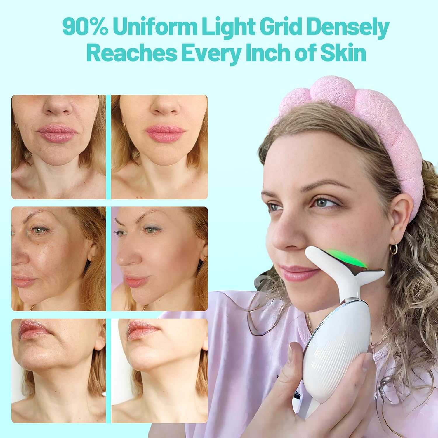 جهاز فلوفركيتي للعلاج بالضوء الأحمر للوجه، جهاز تدليك الوجه بتقنية LED، جهاز الضوء الأحمر (أبيض، 7 ألوان)Dhs. 64.39