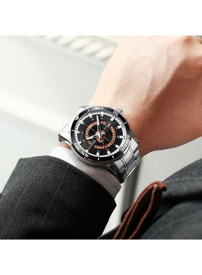 سوار ستانلس ستيل مقاوم للماء للرجال مع ساعة كوارتز كالاندر 8372 - 46 ملم - فضيDhs. 56.56Dhs. 135.00