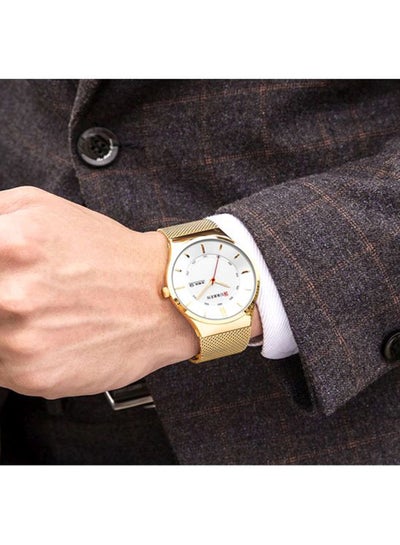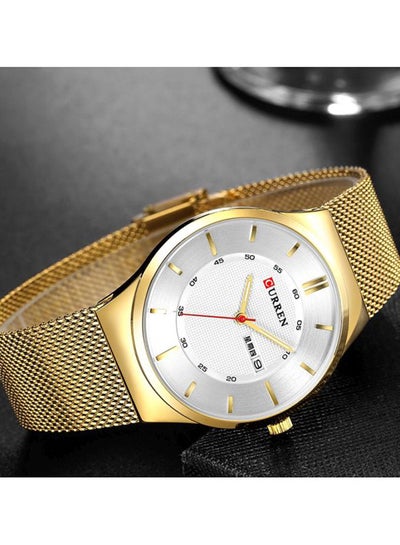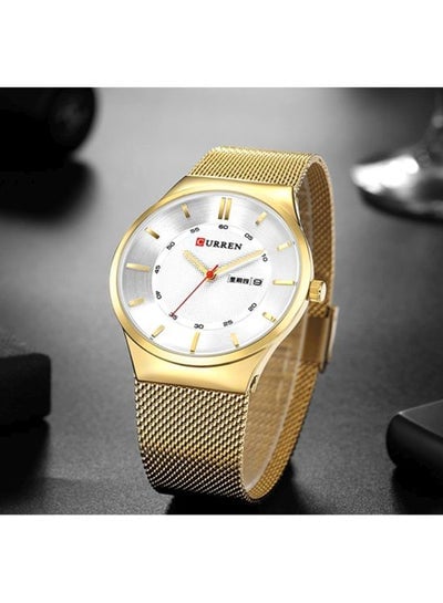 ساعة رجالية مقاومة للماء بسوار ستانلس ستيل وكوارتز كاجوال 8383 - 44 ملم - ذهبيDhs. 58.39Dhs. 125.00