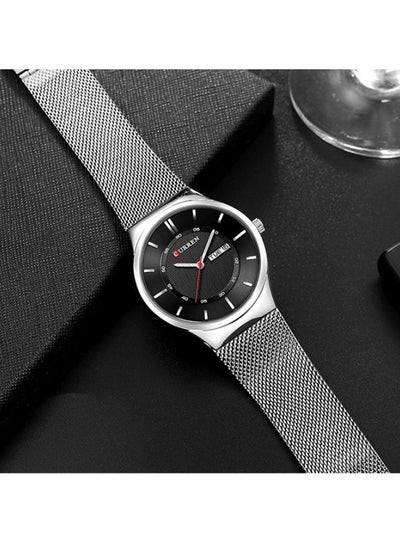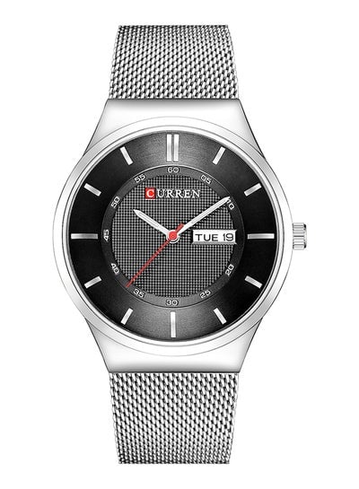 ساعة رجالية مقاومة للماء بسوار شبكي من الستانلس ستيل وكوارتز كاجوال 8303 - 41 ملم - فضيDhs. 58.39Dhs. 115.00