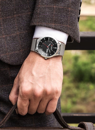 ساعة كاجوال للرجال بسوار شبكي من الستانلس ستيل مقاومة للماء ومواعيد يومية وكوارتز 8311 - 39 ملم - فضيDhs. 69.33Dhs. 145.00