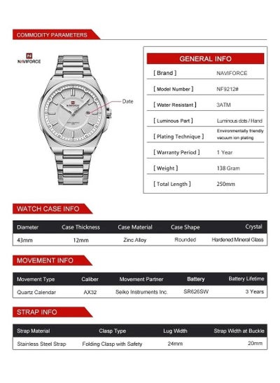 ساعة NAVIFORCE NF9212 للرجال رياضية انالوج كوارتز مقاومة للماء ستانلس ستيل للرجالDhs. 72.07Dhs. 84.00