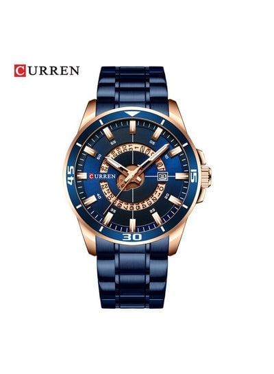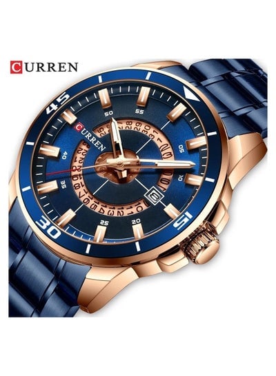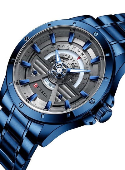 ساعة رجالية 8381 مقاومة للماء بسوار من الستانلس ستيل وحركة كوارتز للتاريخ واليوم - 46 ملم - باللون الأزرقDhs. 72.07Dhs. 84.00