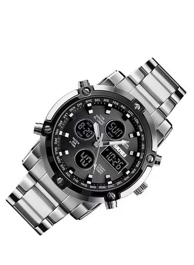 ساعة يد رجالية من الستانلس ستيل، رقمية/أنالوج J41Sbl - 48 ملم - فضيDhs. 72.07Dhs. 145.00