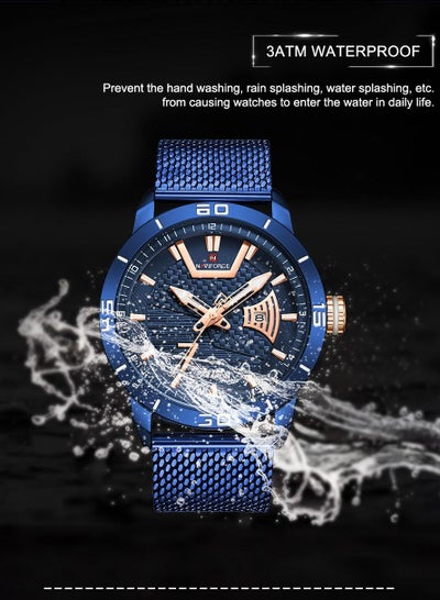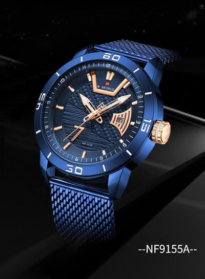 NF9155A BE/BE ساعة يد رجالية بعقارب بسلسلة شبكية زرقاءDhs. 75.72Dhs. 88.00