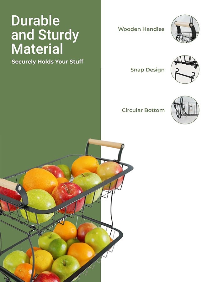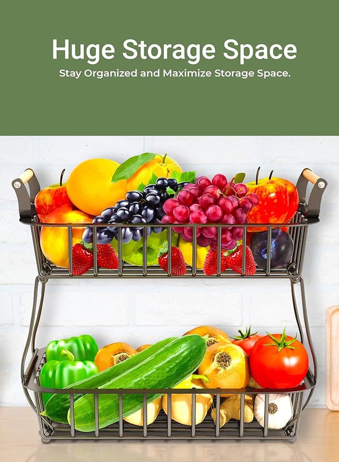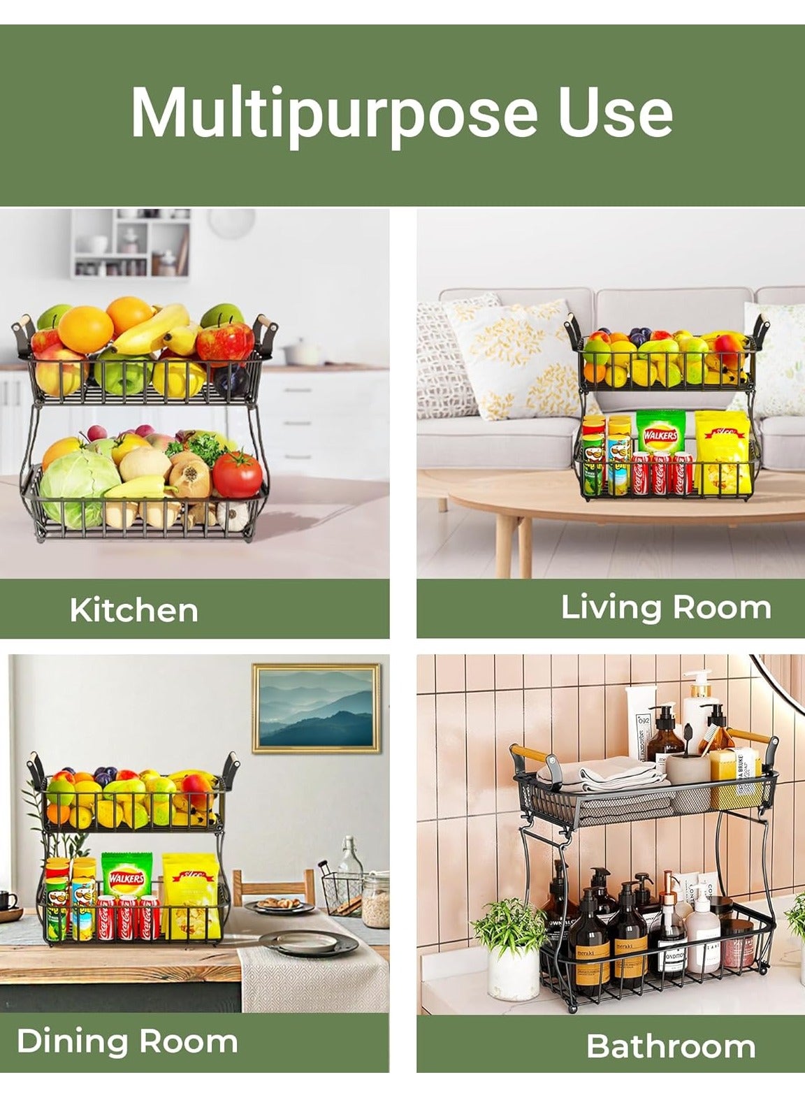 Eworld 2-Tier Fruit Basket for Kitchen Countertop, Detachable Metal Storage Stand with Wooden Handle, Ideal for Fruits, Vegetables, Bread and Snacks, BlackDhs. 59.95Dhs. 75.00