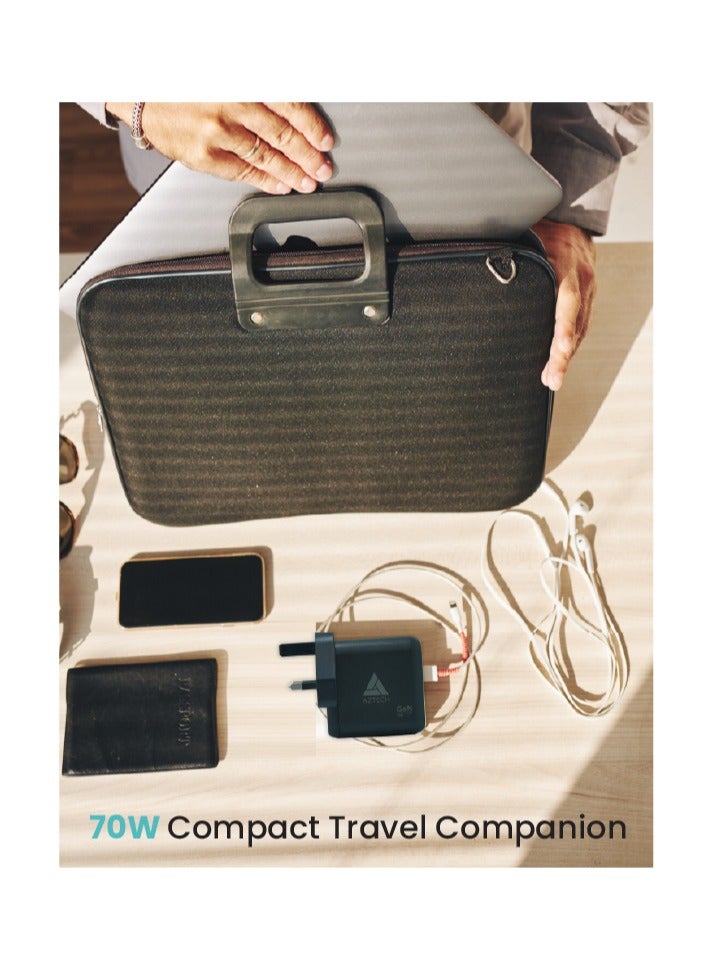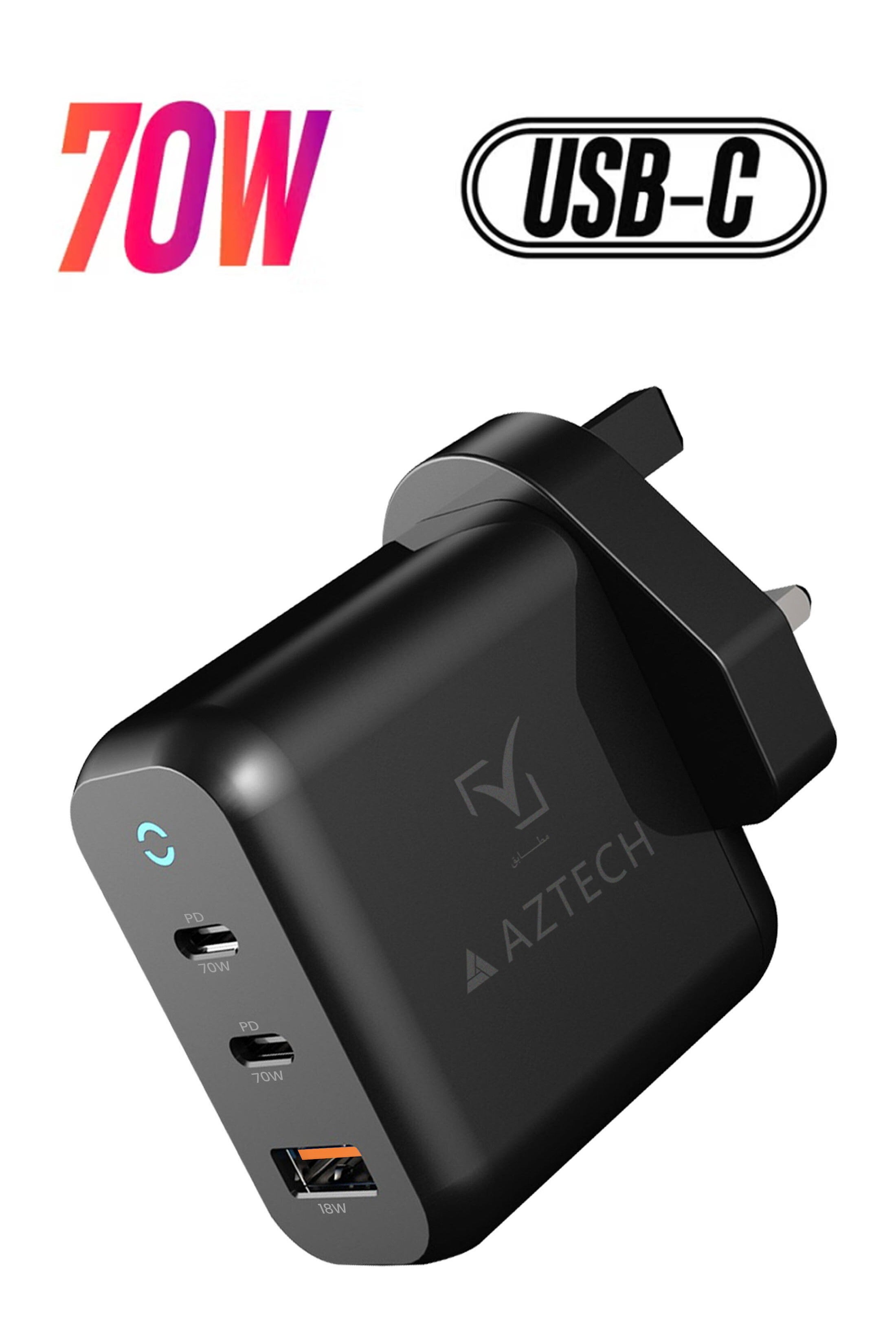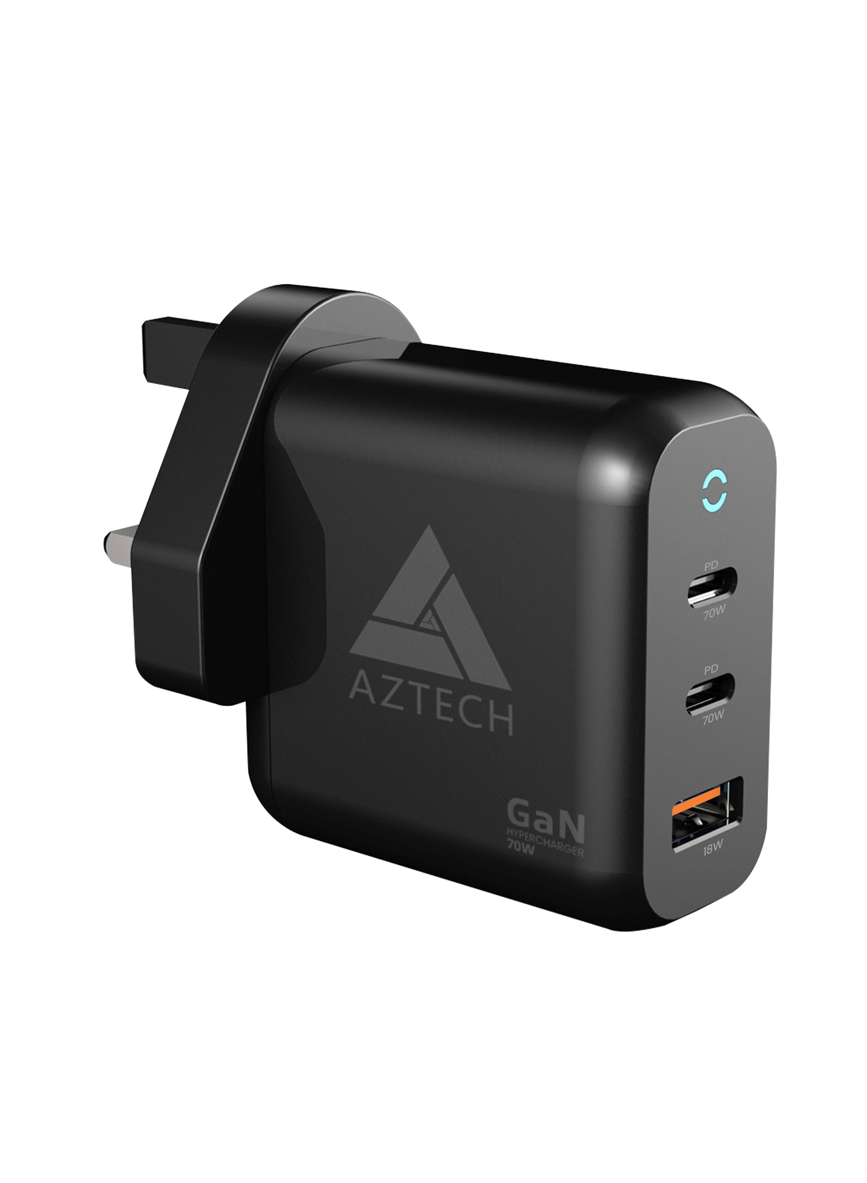 AZTECH HyperCharger GaN 70W Fast Wall Charger, 2 USB Type-C and 1 USB-A Ports, Black | AZTG1HC-70WDhs. 95.25Dhs. 199.00