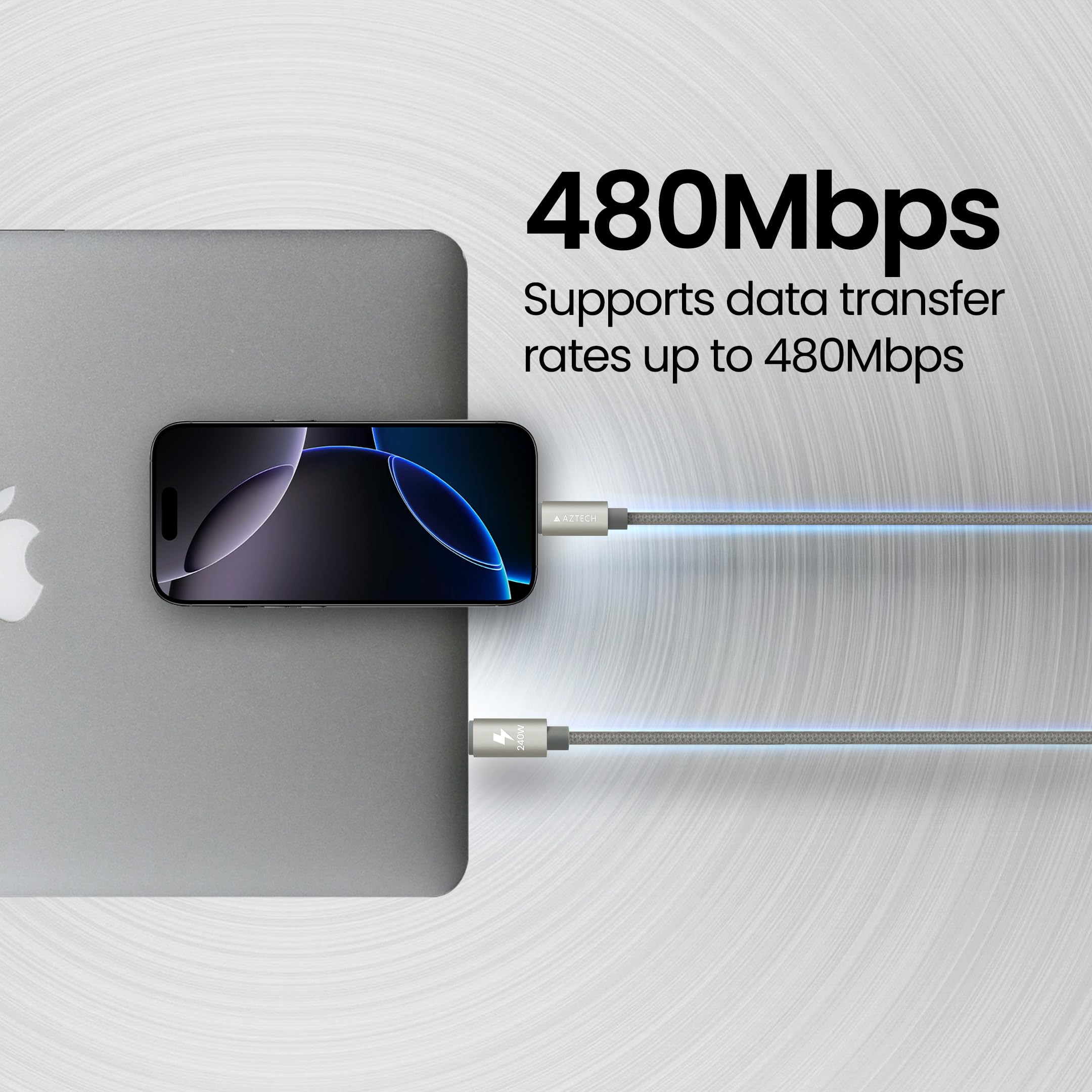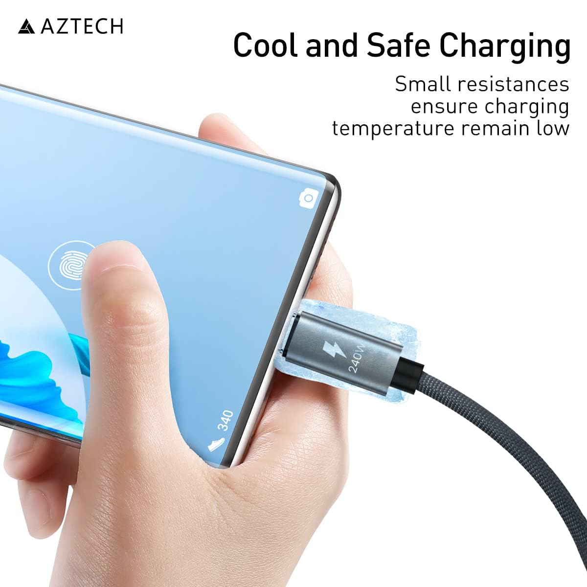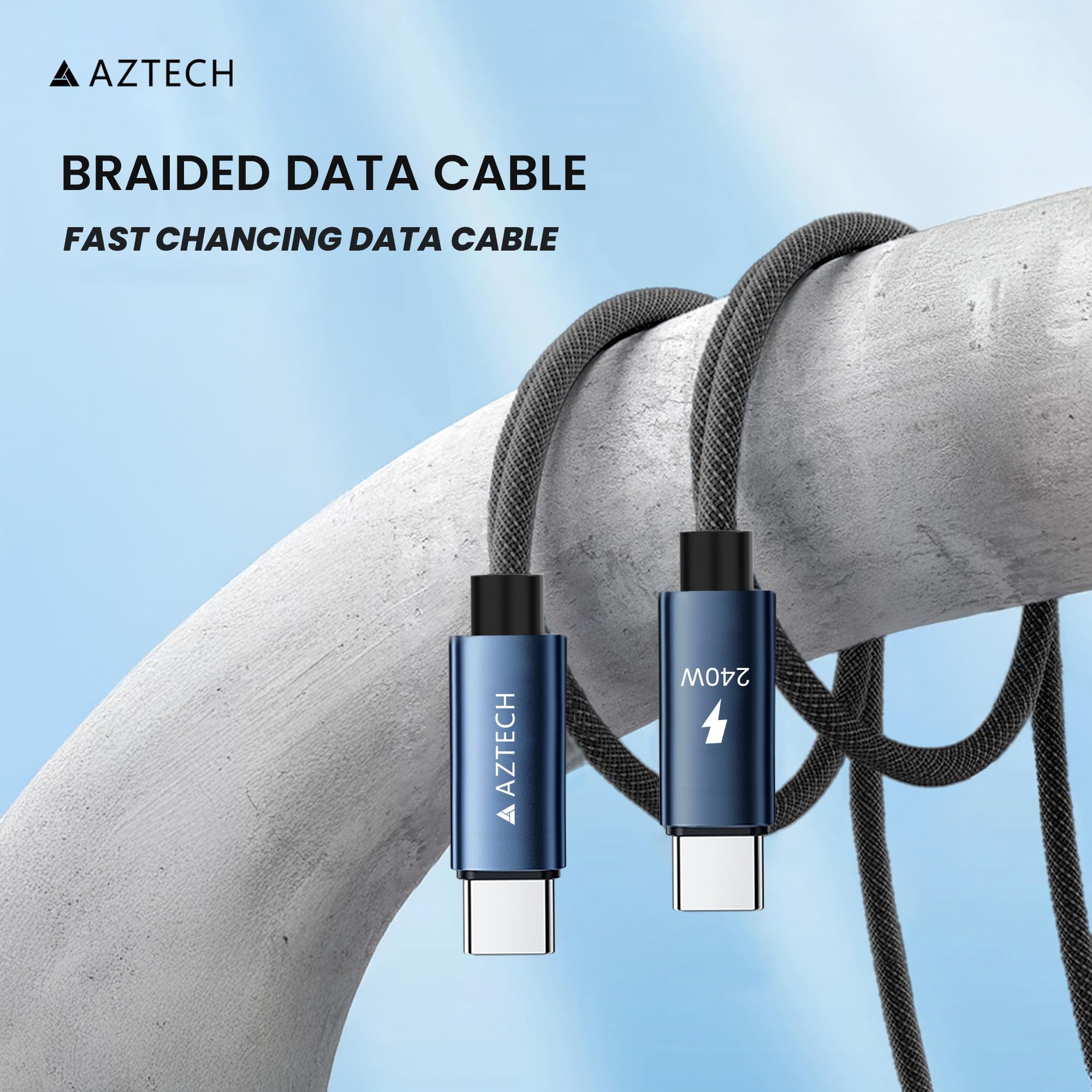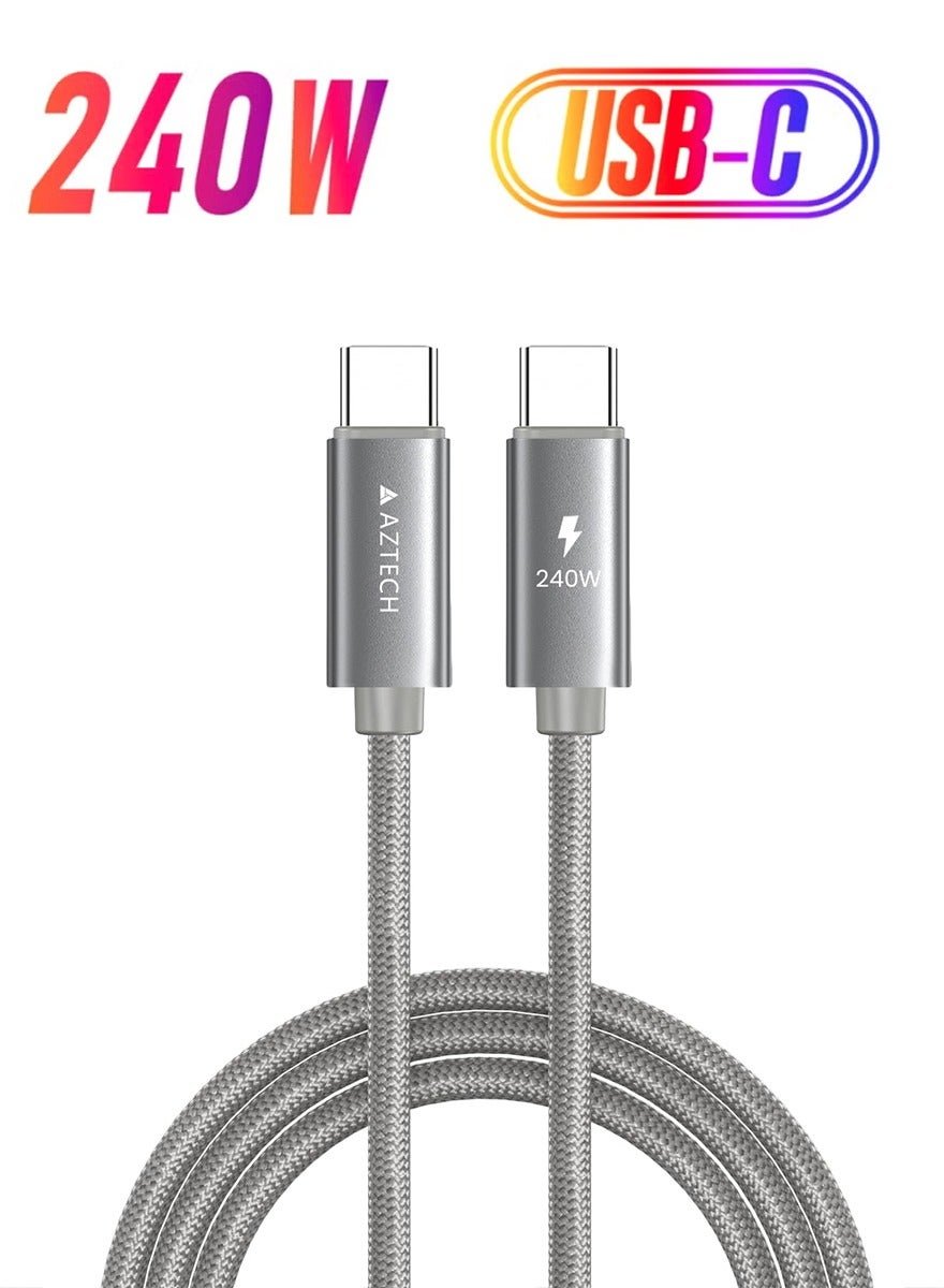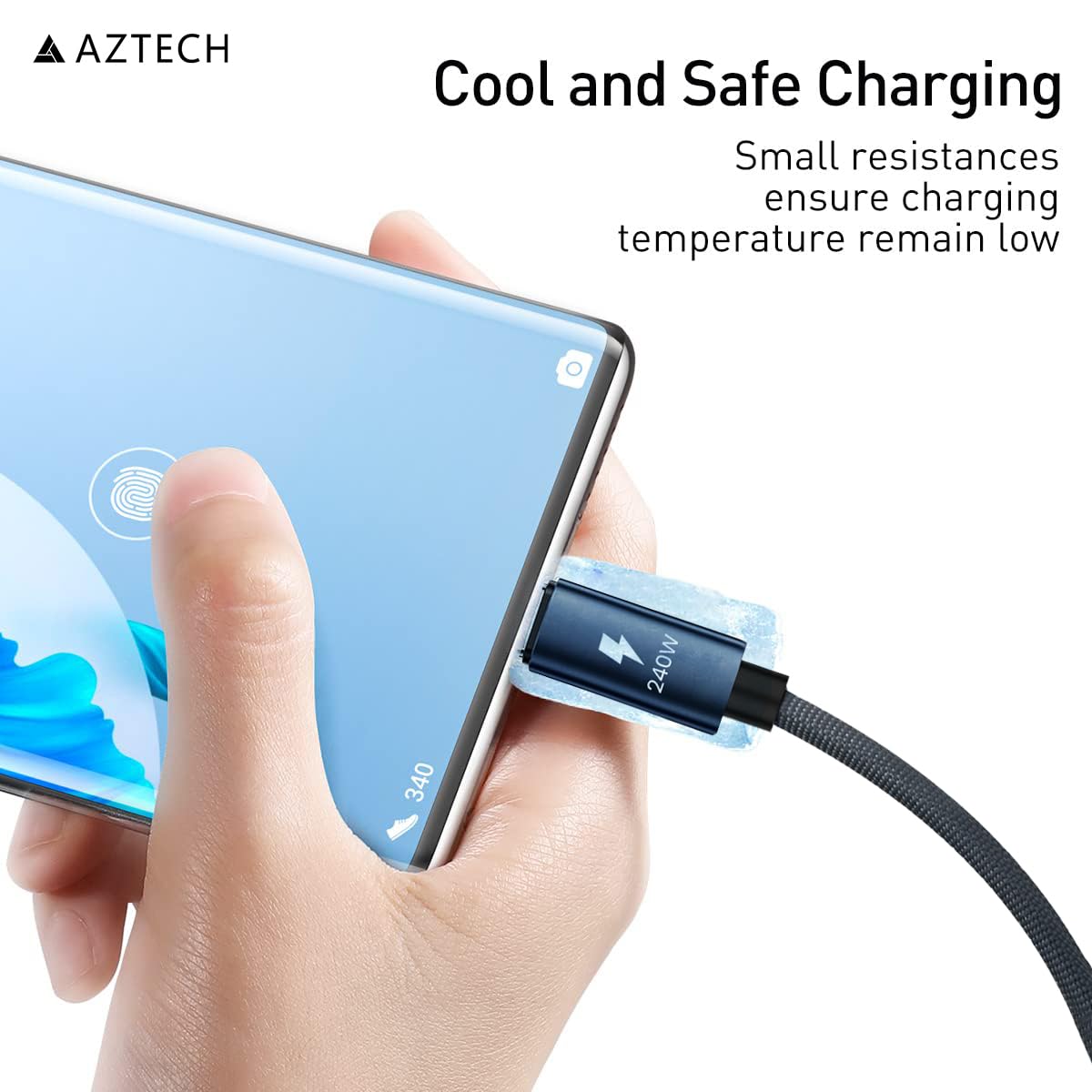 AZTECH HyperCable USB C to USB C Cable 240W 1M Fast Charging 48V/5A PD E-Marker Braided Type C Cable for Laptop MacBook Galaxy S24 Steam Deck Gaming Devices Durable Anti-Tangle Wire Black BlueDhs. 59.00Dhs. 119.00