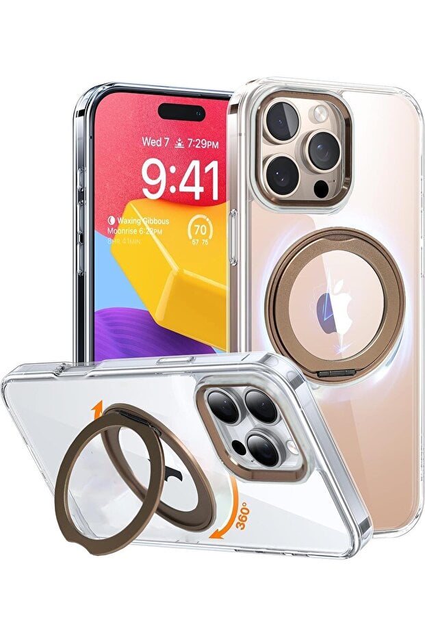 AZTECH SuperSnap Clear Case with 360° Rotation Gold Metal Ring, Kickstand & Ring Holder, Shockproof Protection, MagSafe Wireless Charging Compatible, iPhone 14 Pro CaseDhs. 89.00Dhs. 119.00
