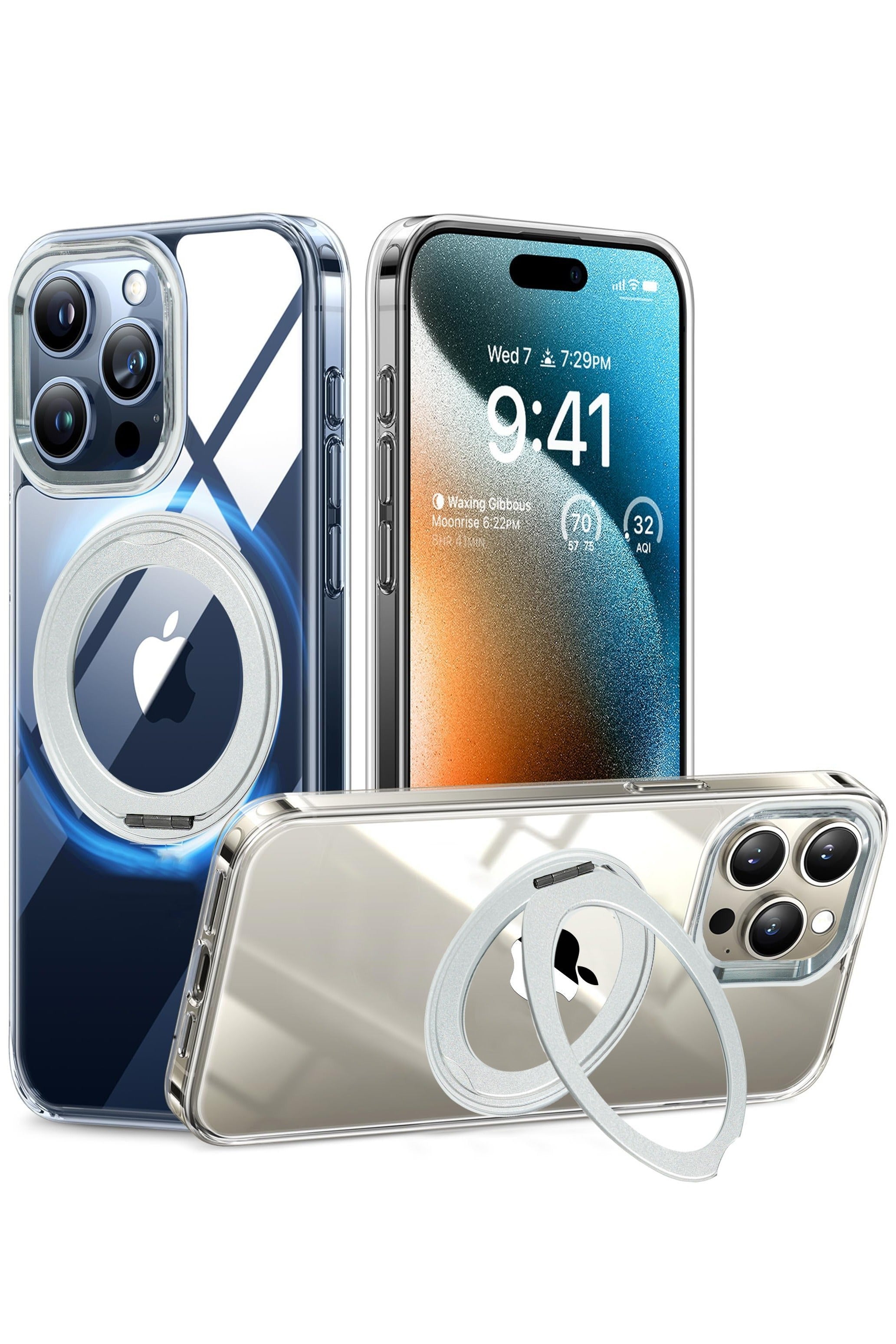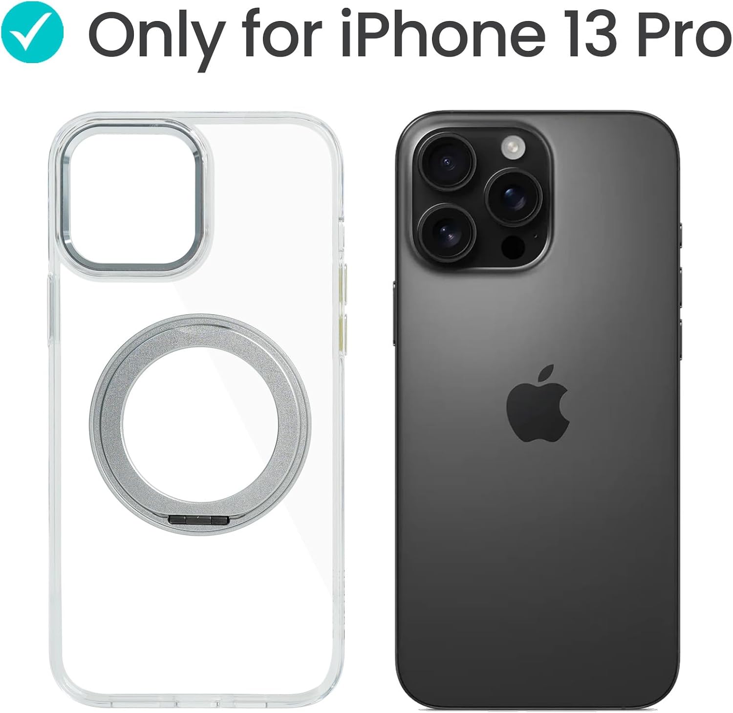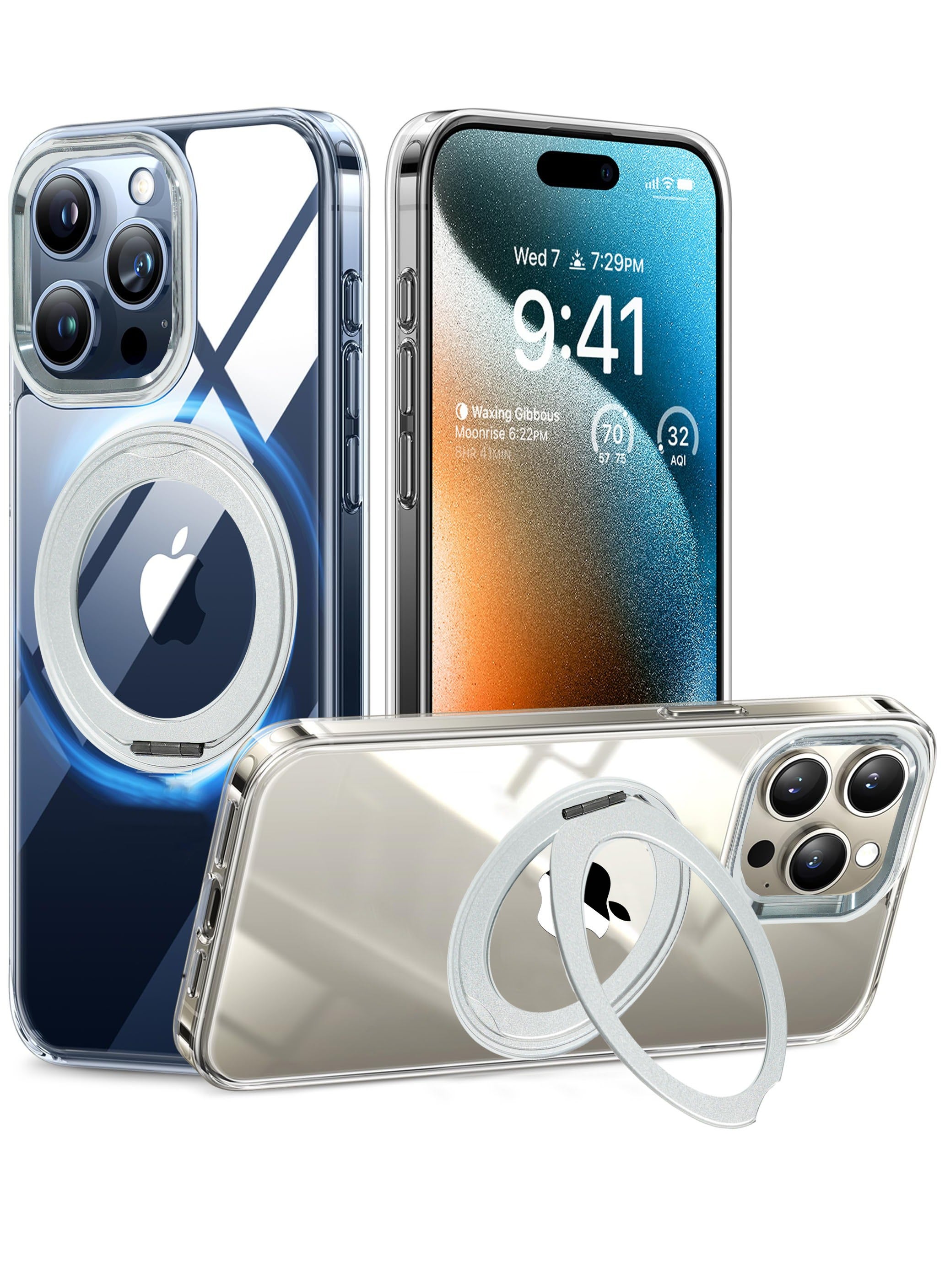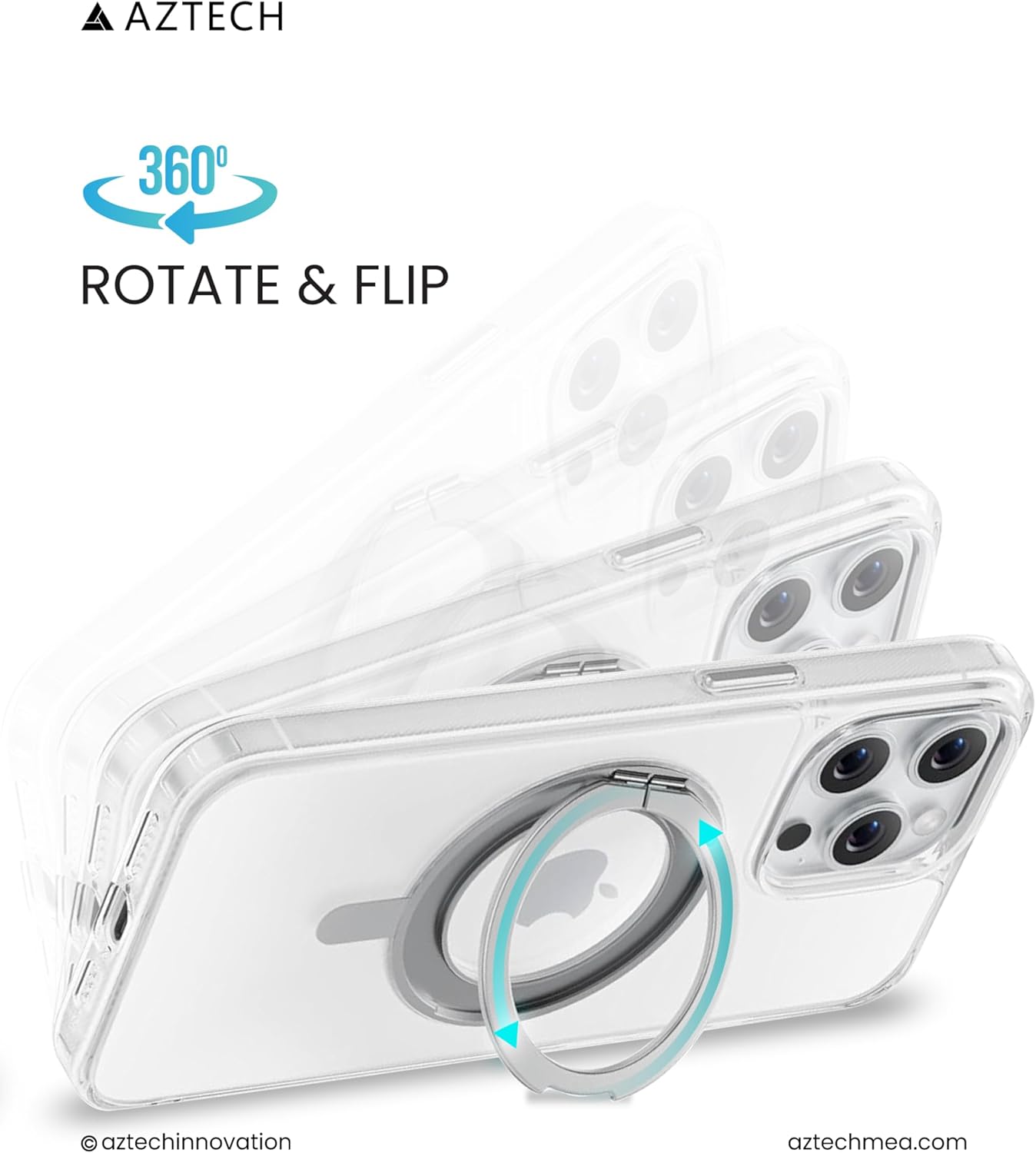 AZTECH Upgraded 360° Spin Magnetic Stand for iPhone 13 Pro Case, [Built-in Kickstand&Ring Holder][Compatible with MagSafe][Military Grade Shockproof] Translucent Silver, ClearDhs. 89.00Dhs. 119.00