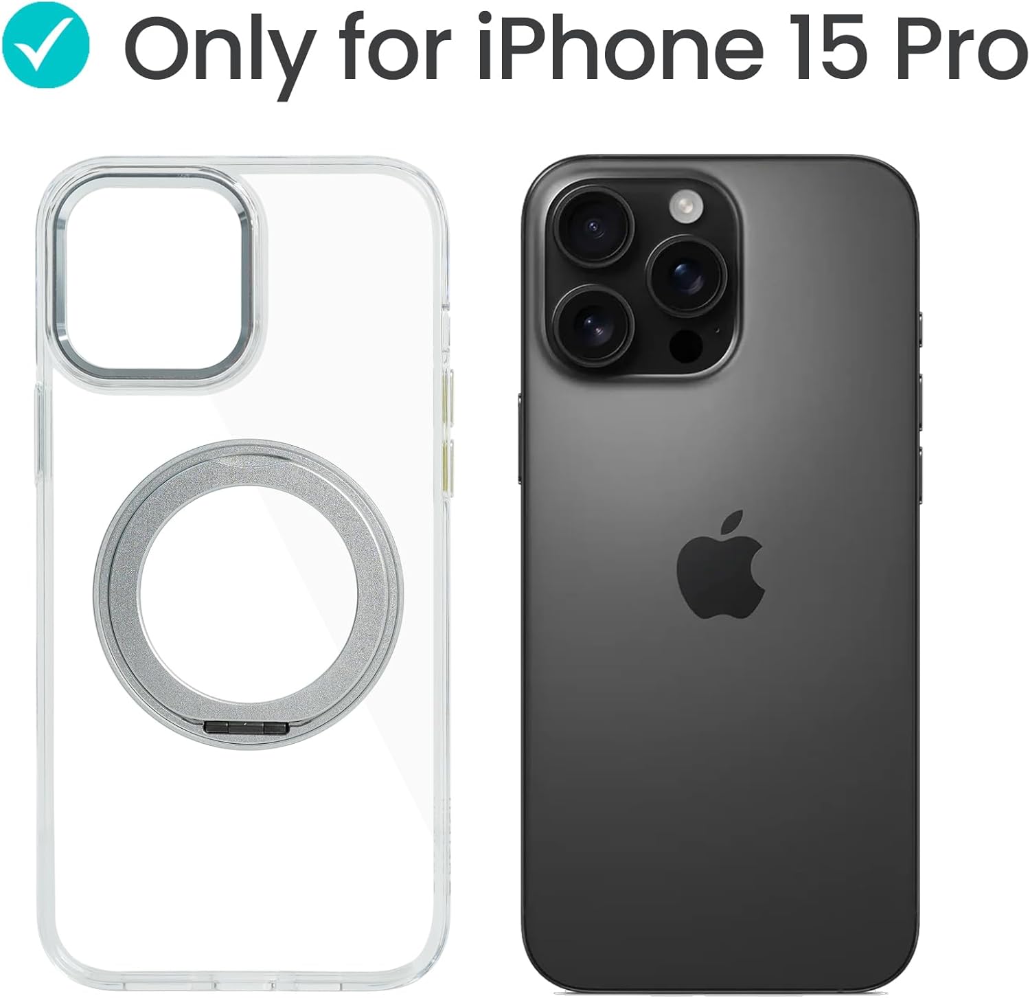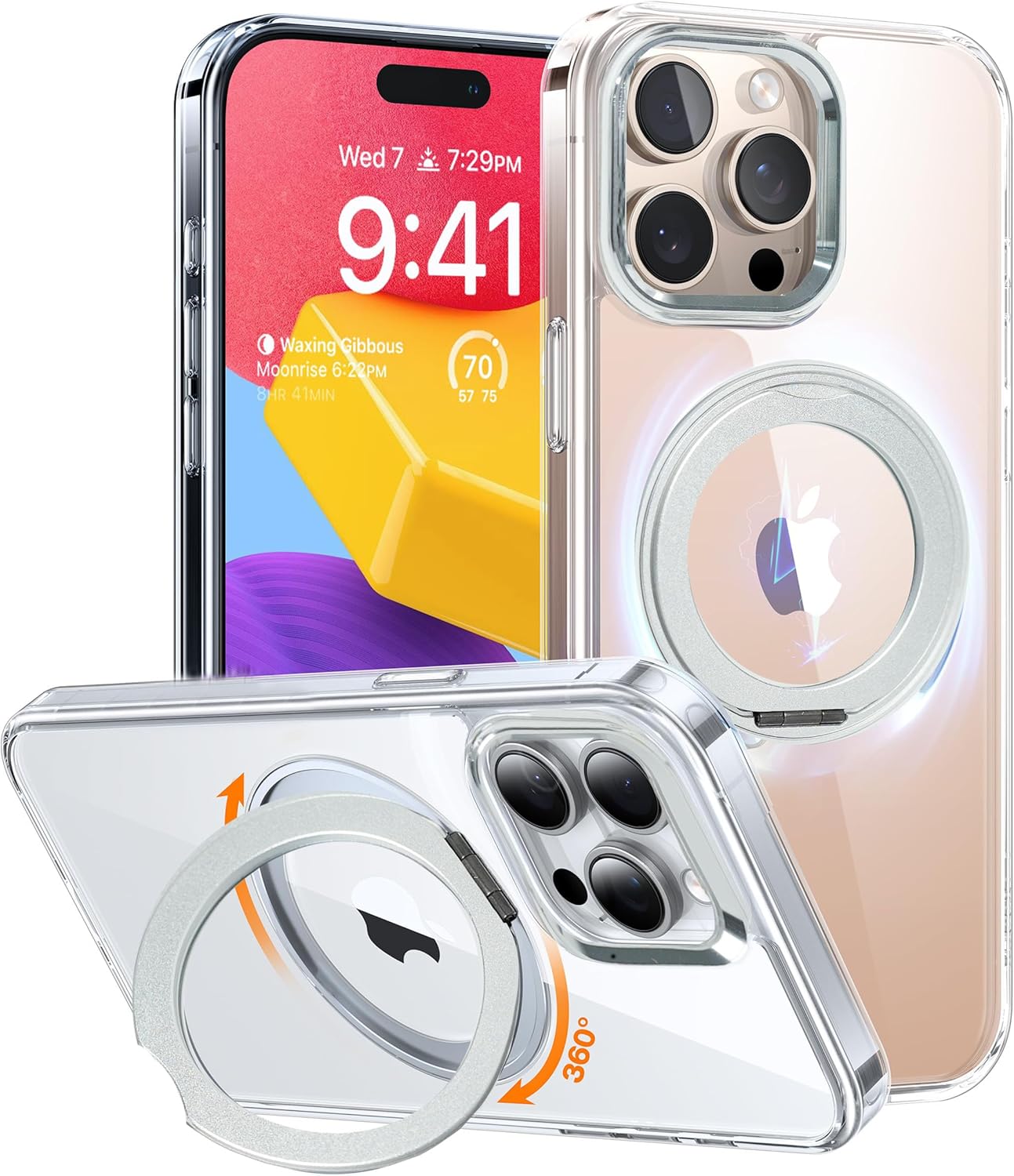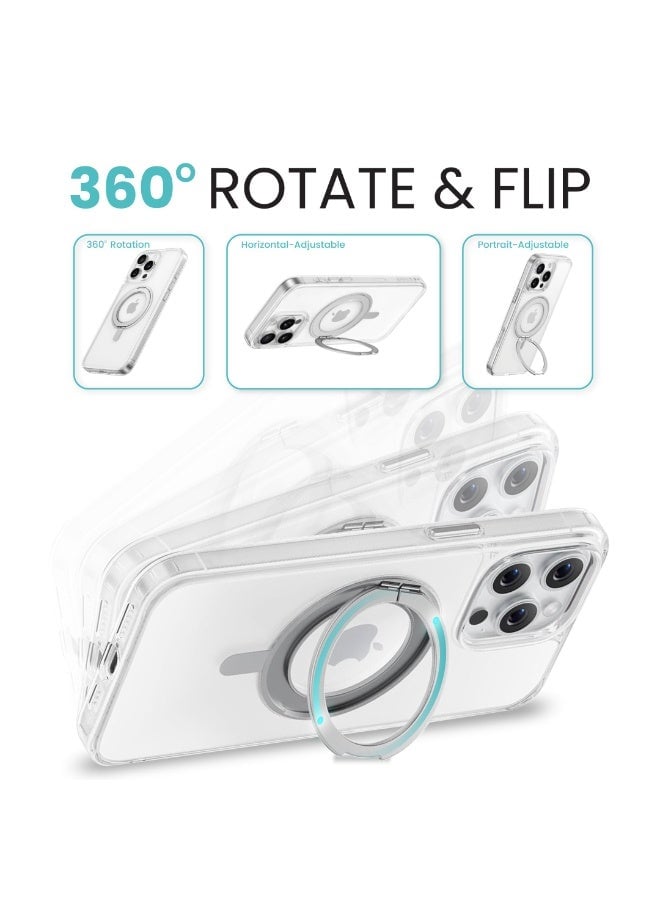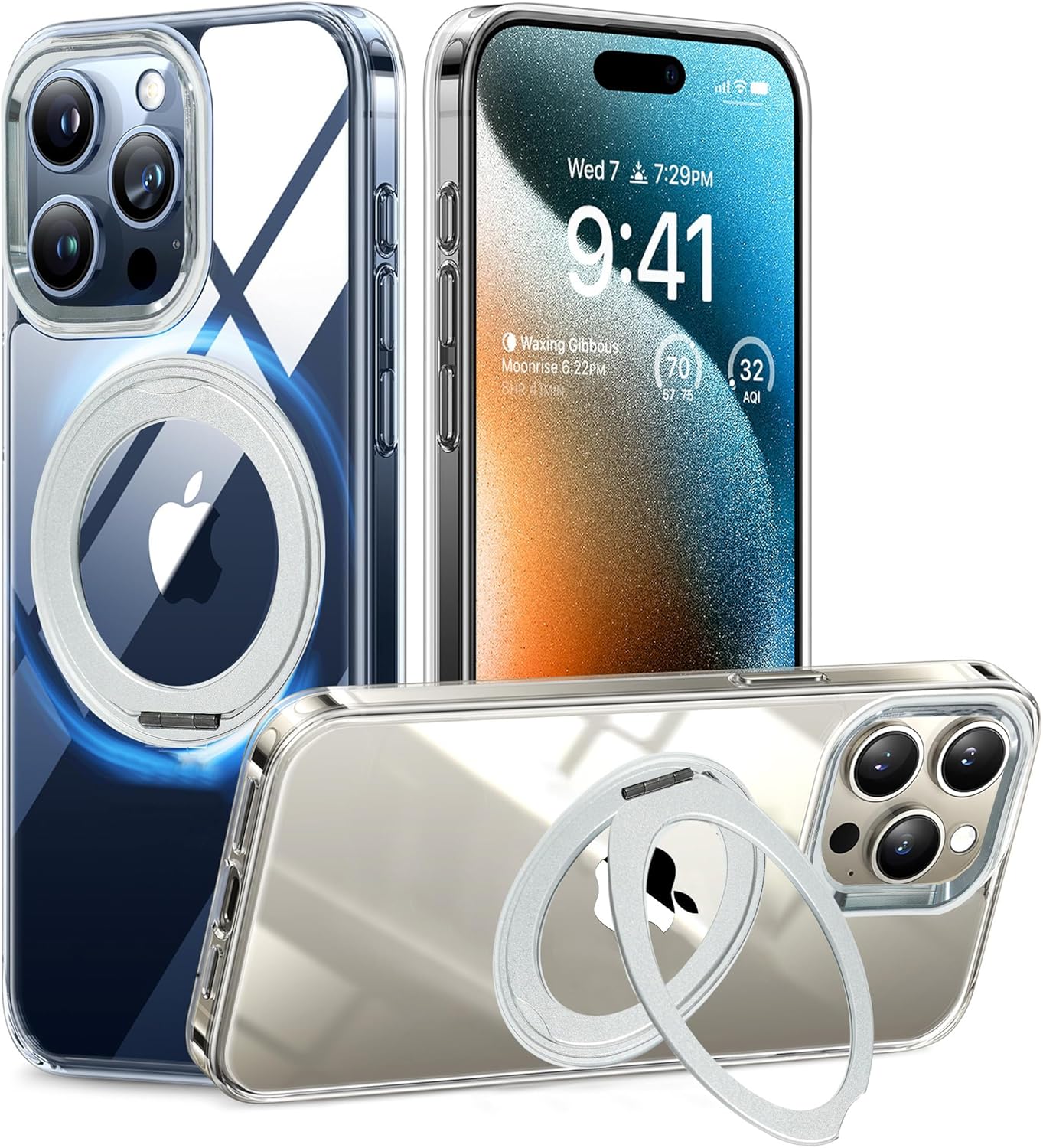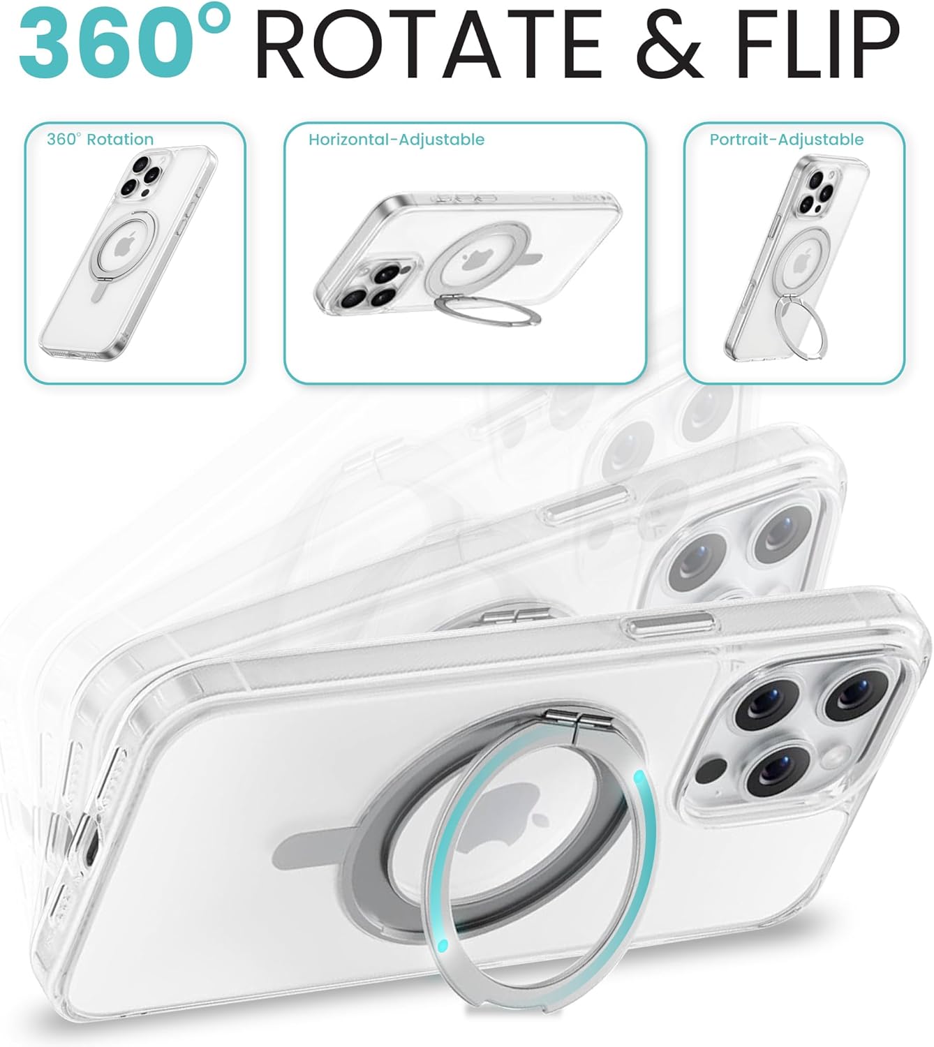 AZTECH Upgraded 360° Spin Magnetic Stand for iPhone 13 Pro Case, [Built-in Kickstand&Ring Holder][Compatible with MagSafe][Military Grade Shockproof] Translucent Silver, ClearDhs. 89.00Dhs. 119.00