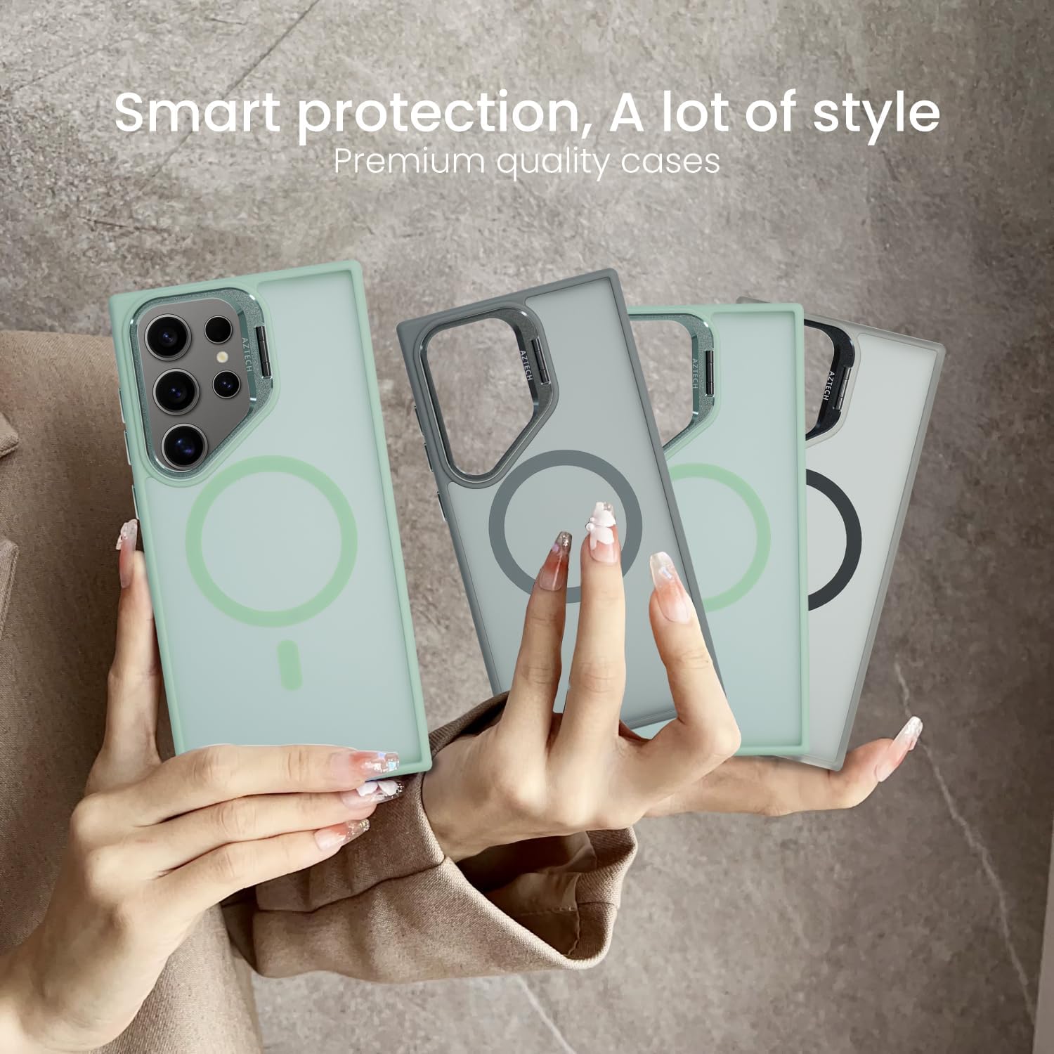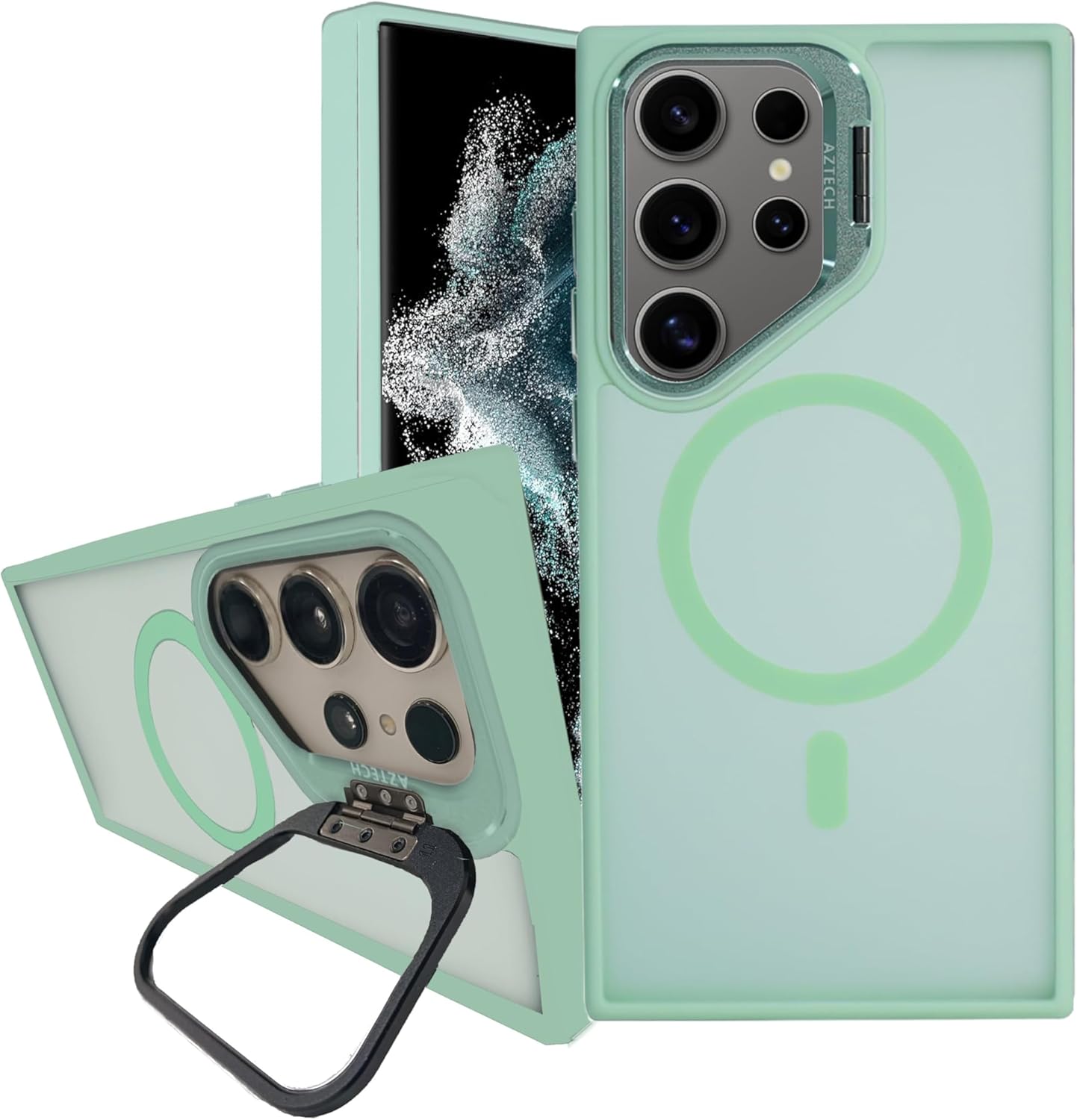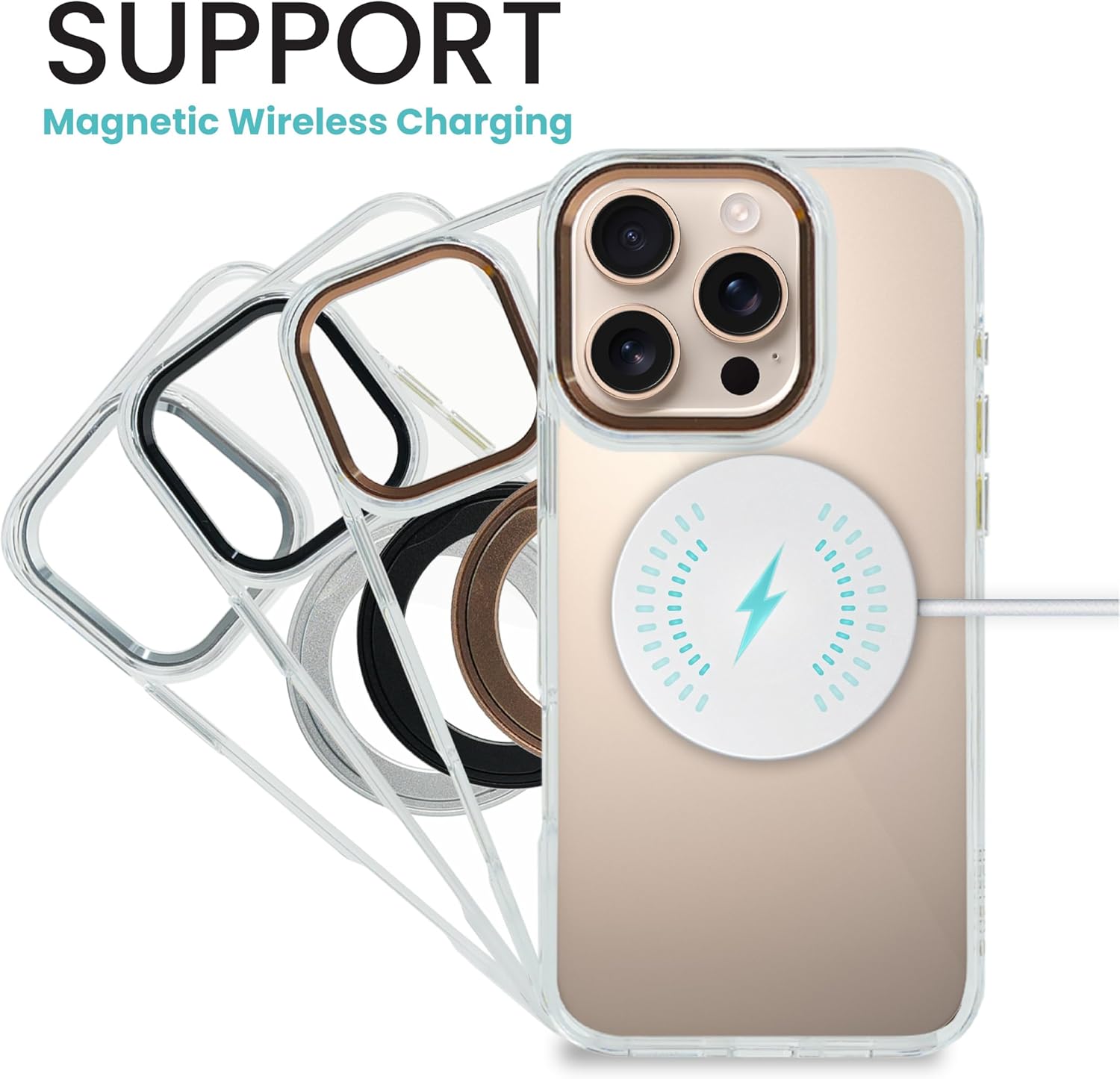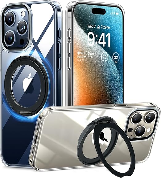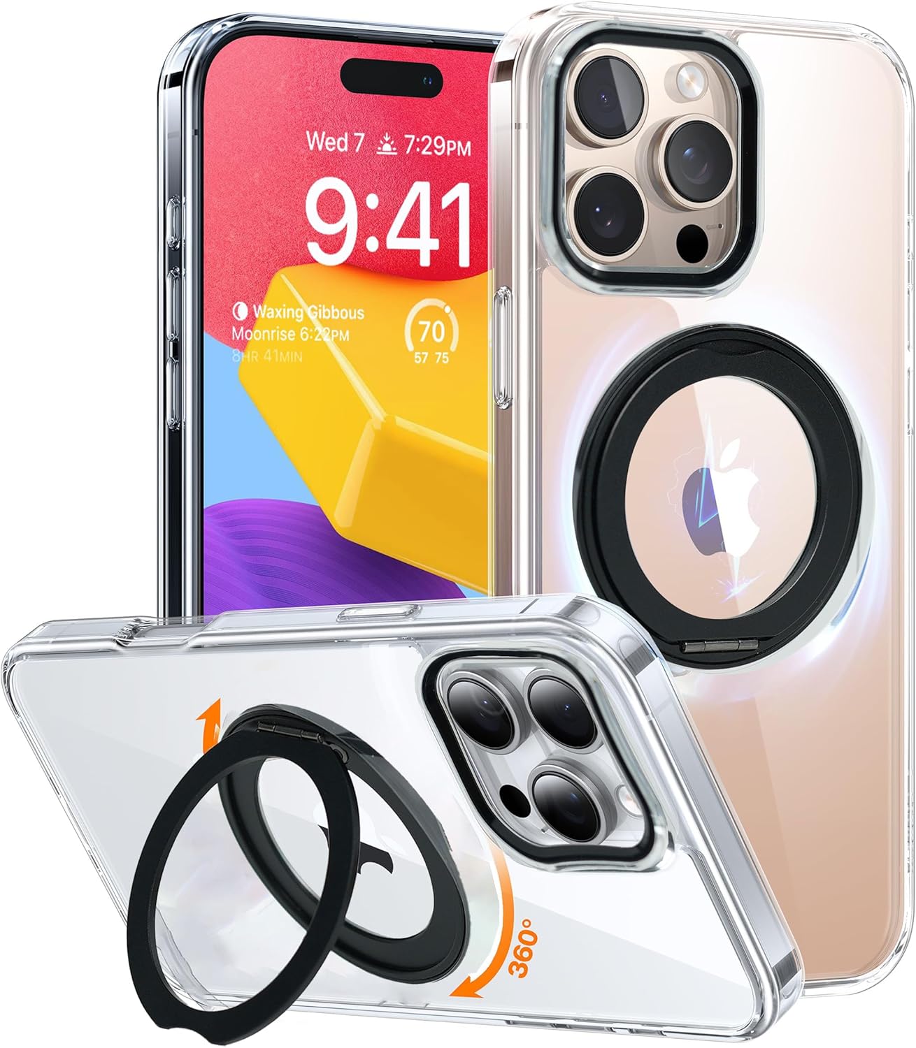 AZTECH Upgraded 360° Spin Magnetic Stand for iPhone 13 Pro Case, [Built-in Kickstand&Ring Holder][Compatible with MagSafe][Military Grade Shockproof] Translucent Silver, ClearDhs. 89.00Dhs. 119.00