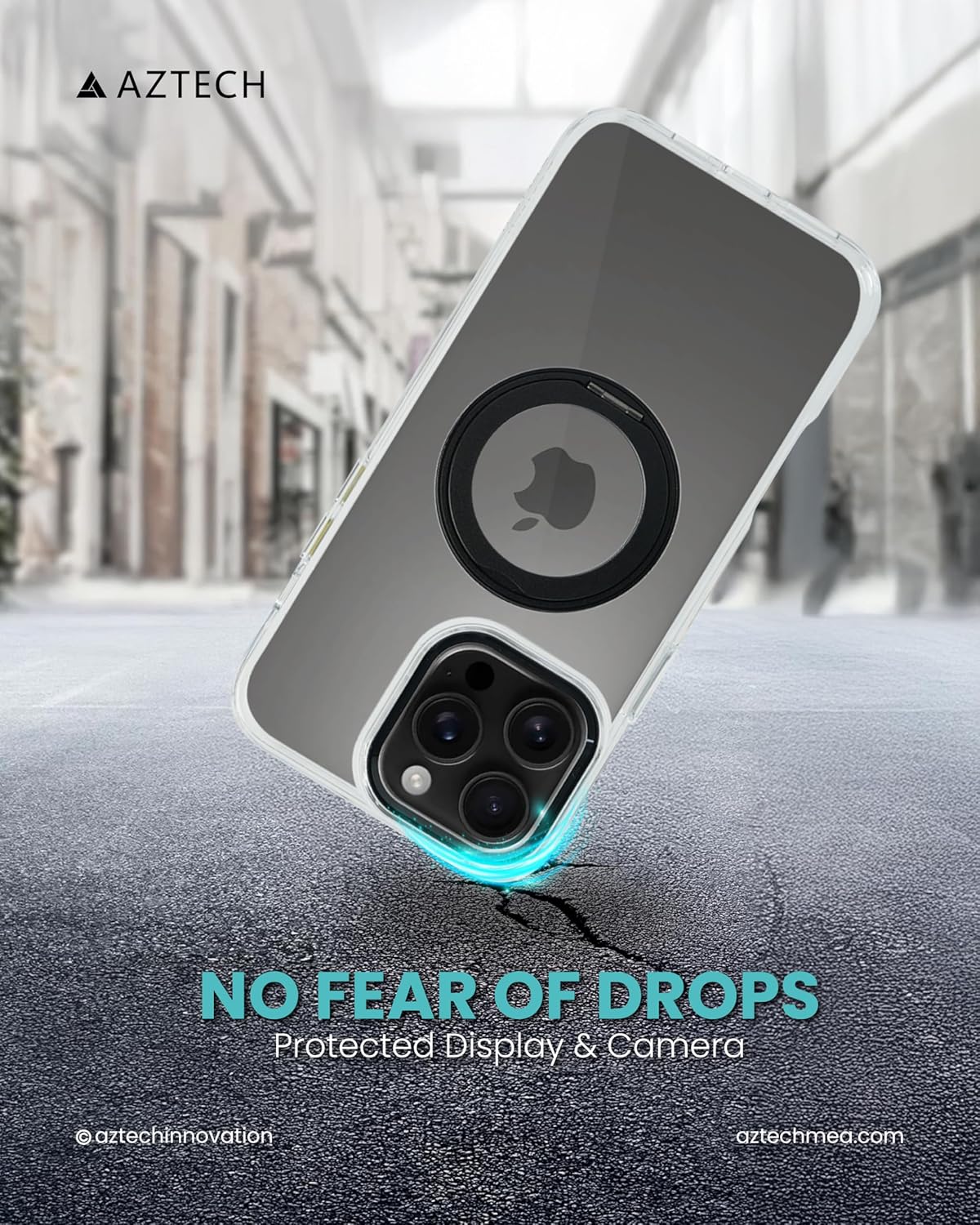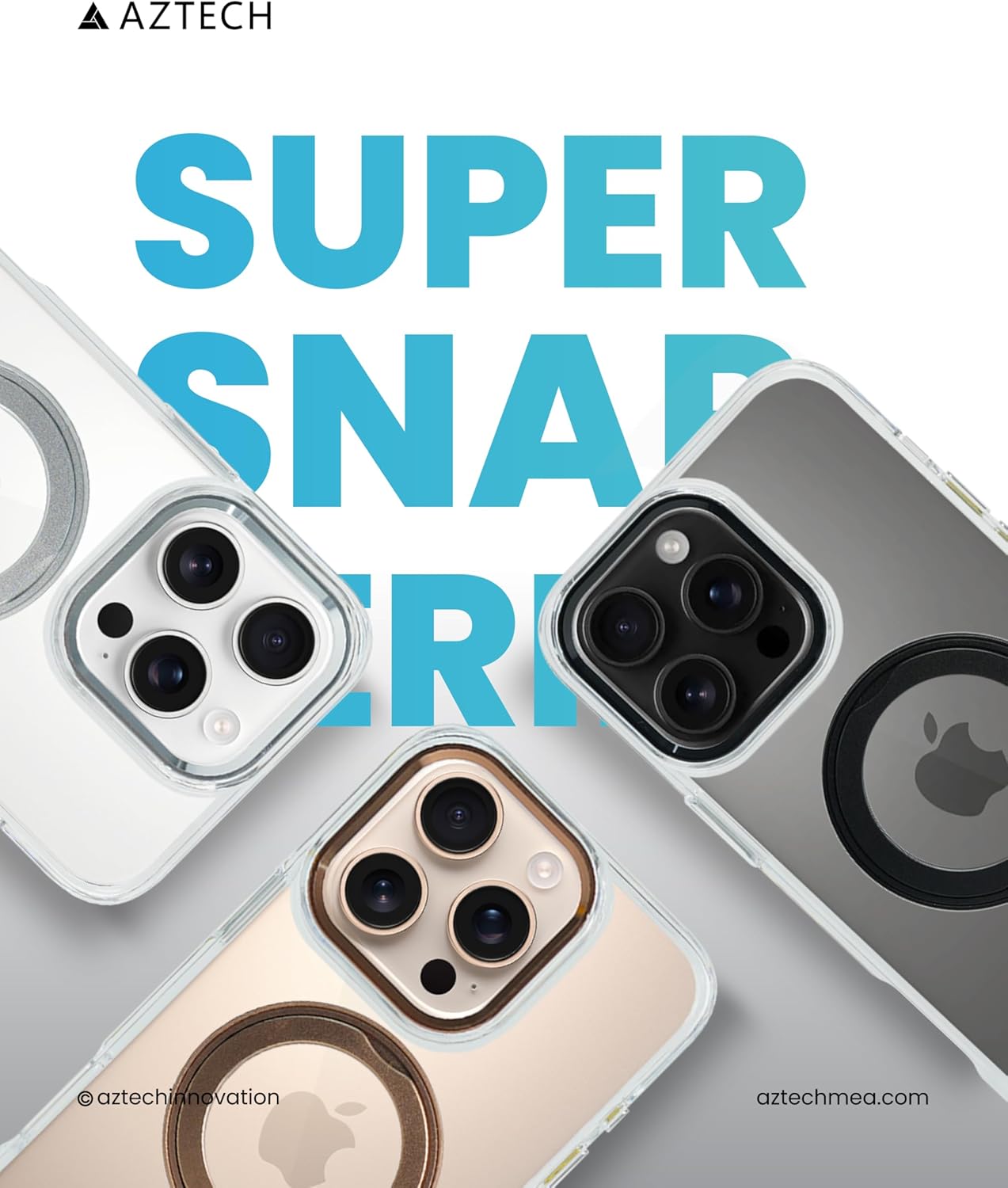 AZTECH SuperSnap 360°Rotatable Silver Ring Magnetic Ring for iPhone 15 Pro Case, Fit for MagSafe with Kick Stand & Ring Holder 16FT Military Grade Shockproof Translucent Back for iPhone 15 ProDhs. 89.00Dhs. 119.00