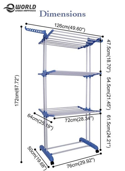 علاقة رف ملابس بثلاث طبقات مع عجلات أبيض/أزرق متوسط أزرق مقاس واحد سمDhs. 61.09Dhs. 64.00