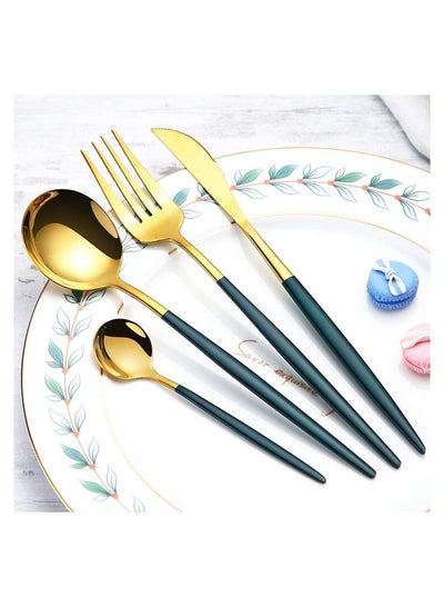طقم أدوات مائدة من الفولاذ المقاوم للصدأ مكون من 24 قطعة من الذهب الأخضر، خدمة ملعقة وشوكة لـ 6 أشخاص، آمنة وسهلة التنظيفDhs. 82.04Dhs. 85.95