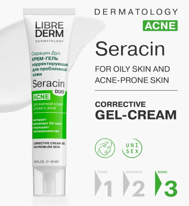 LIBREDERM Seracin DUO Dual Action Cream for Acne Spot Treatment and Blackheads, Hydrating & Moisturizing Cream, 40ml 87.00 100.00