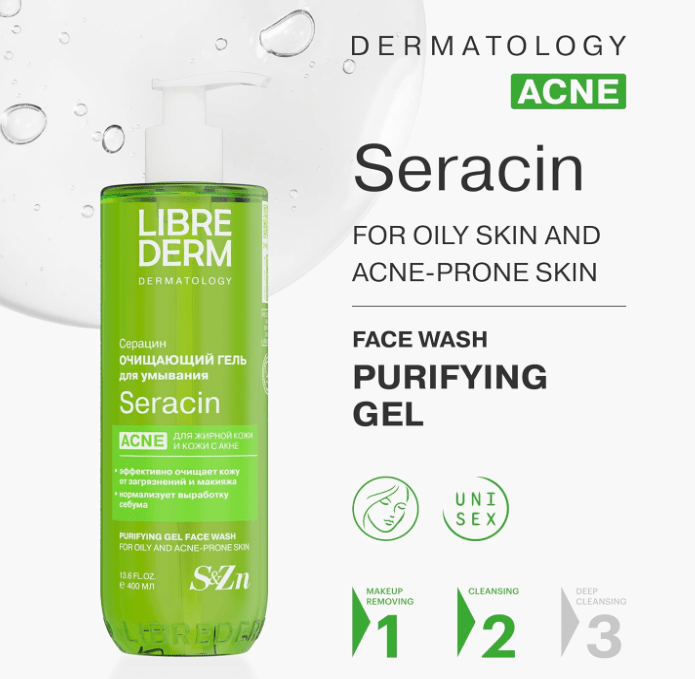 LIBREDERM Seracin Purifying Foaming Facial Gel Cleanser, Hydrating Face Wash for Oily Skin, Removes Makeup 400ml 81.00 110.00