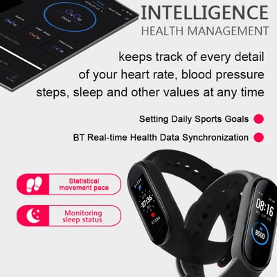 سوار معصم ذكي M5 بقدرة 110.0 مللي أمبير في الساعة باللون الأسودDhs. 28.43Dhs. 69.00