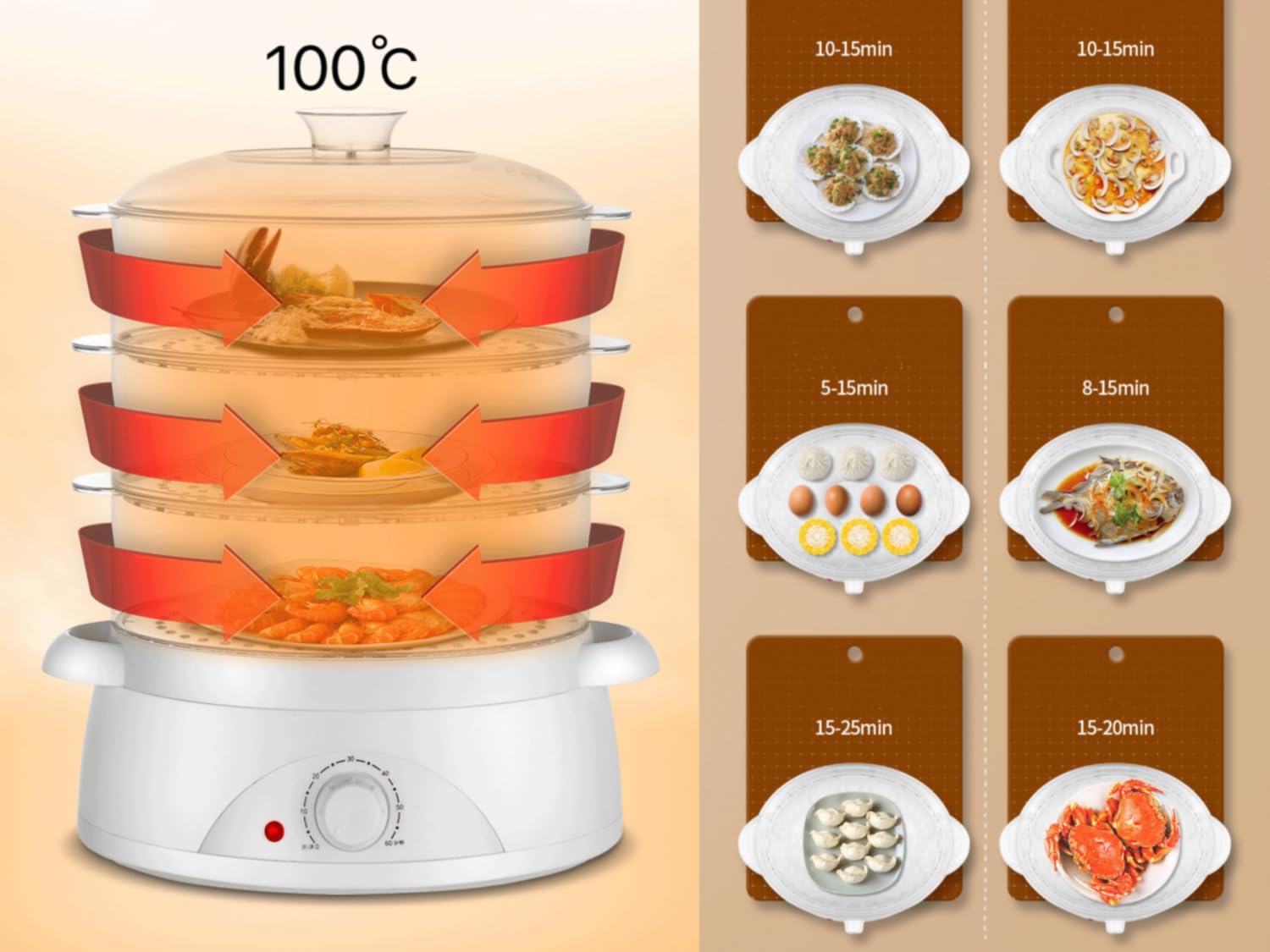 10L Food Steamer,3 Tiers,300W,60 Minutes Timer,Multifunctional electric steamer,Makes Baby food, Healthy Food, Meat, Fish & More,1 year warranty, XB-3119 110.00 115.00