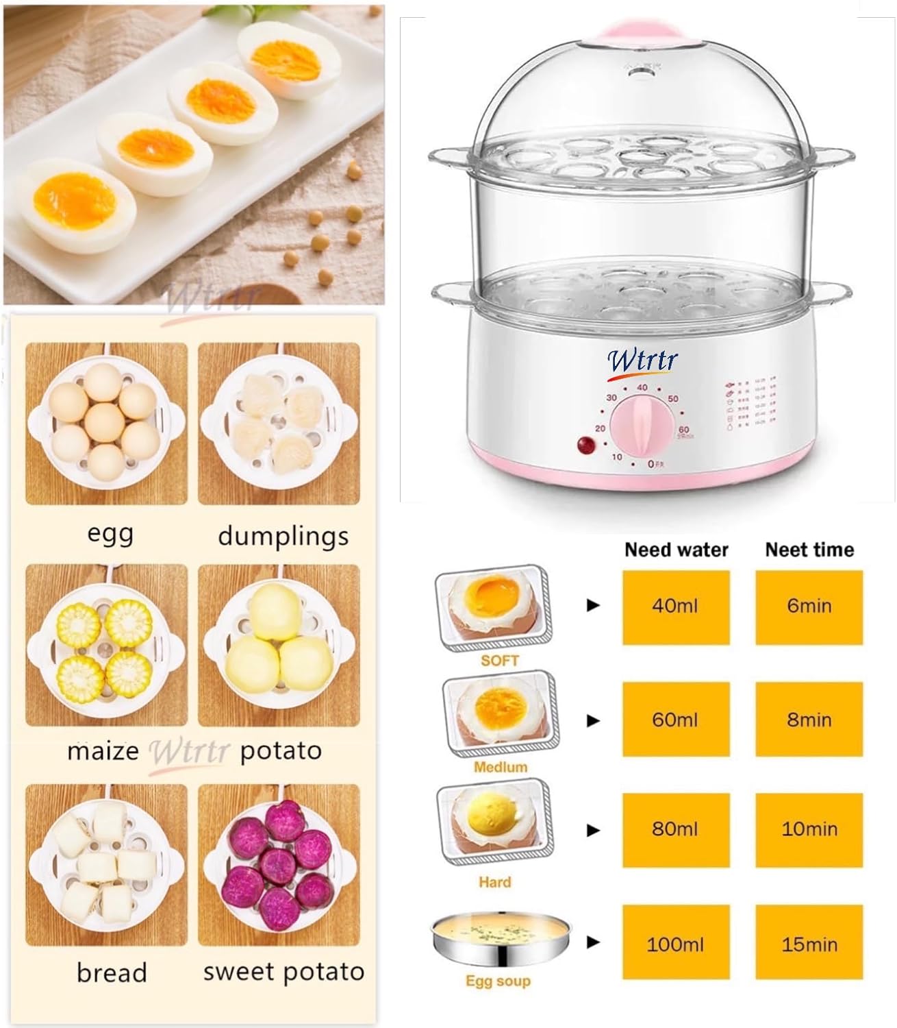 Timed Large Capacity Egg Boiler, 8 or 24 Egg Cooker,Egg Steamer Maker,Multi Function Breakfast Machine , 40.00 45.00