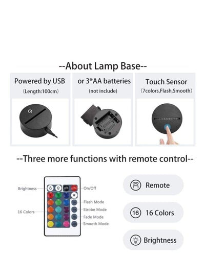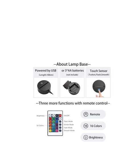 ضوء ليلي وهمي ثلاثي الأبعاد بـ 7 ألوان LED لرؤية غرفة نوم الطفل وجناح النوم جرار AA مزود الطاقة ومزاج طاولة الأطفال وأعياد ميلاد الأطفال وحفلات النوم هدية ملونة للتحكم عن بعدDhs. 51.17Dhs. 55.00